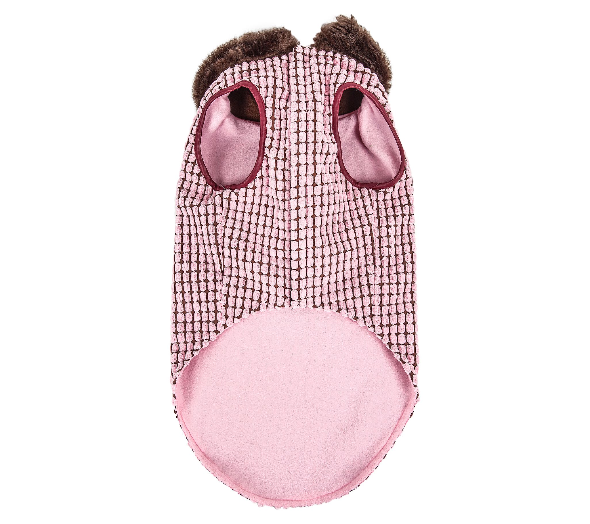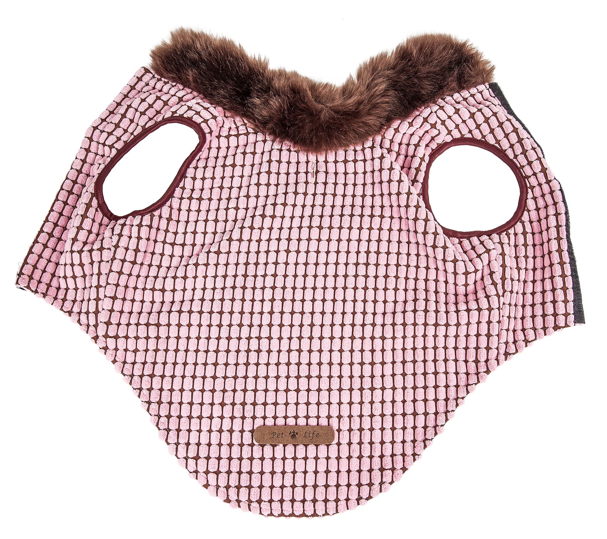 Dress up your pup for walks and outings with this luxe jacket featuring a snappy box print and a plush faux fur collar. From Pet Life.