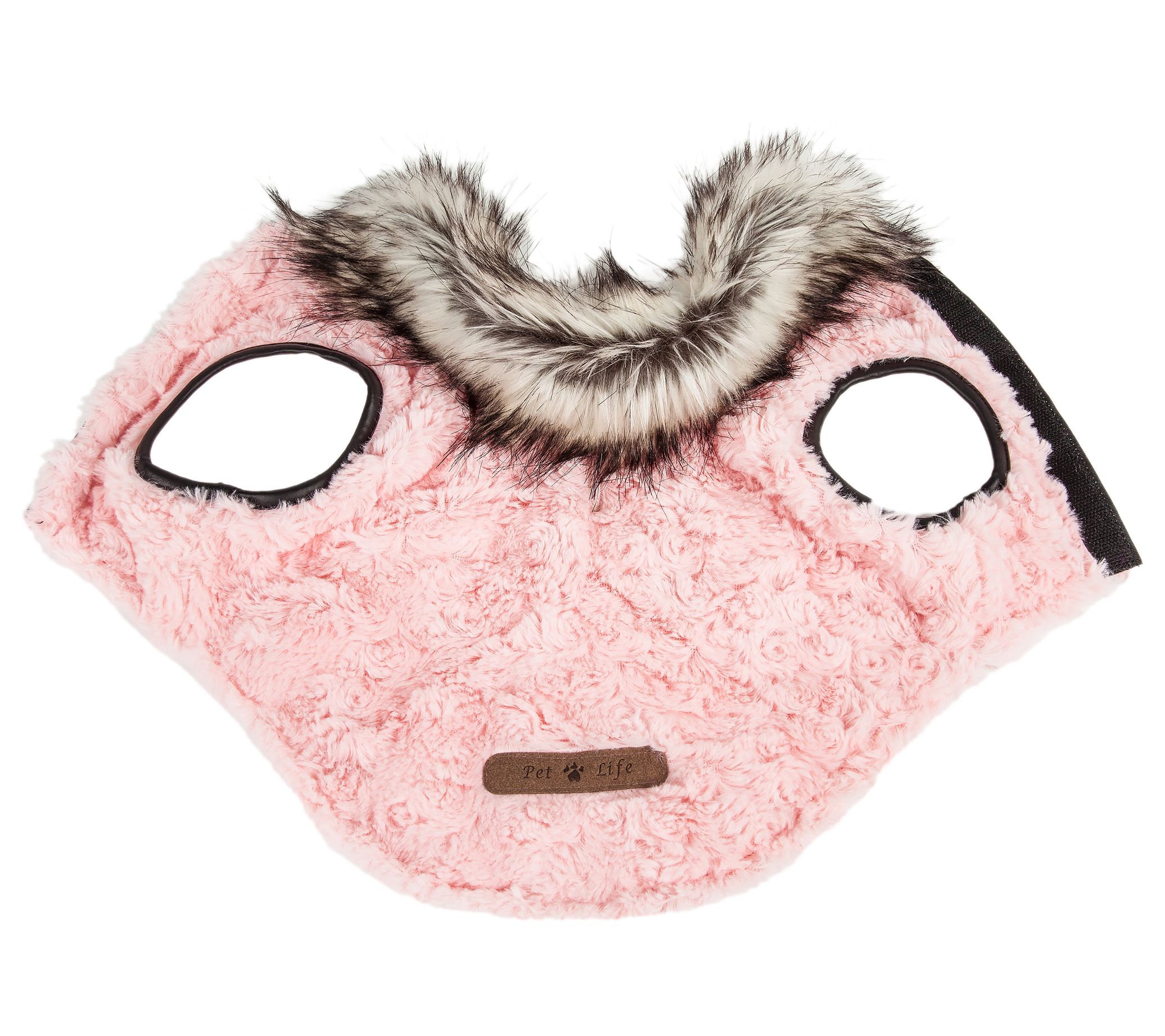• Features: faux fur collar, leash slit neckline, Velcro belly closures