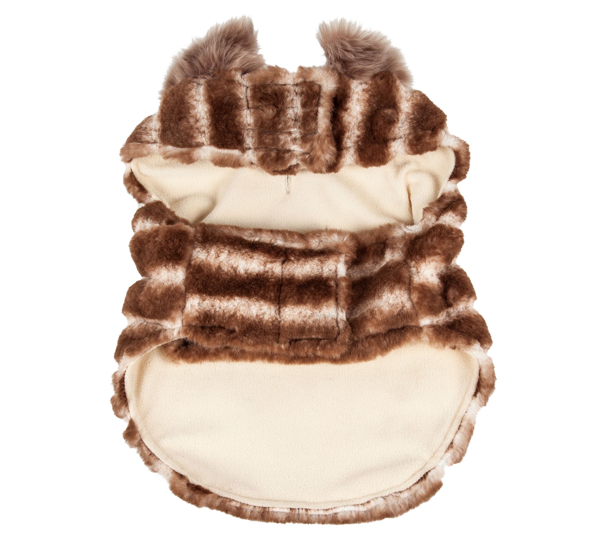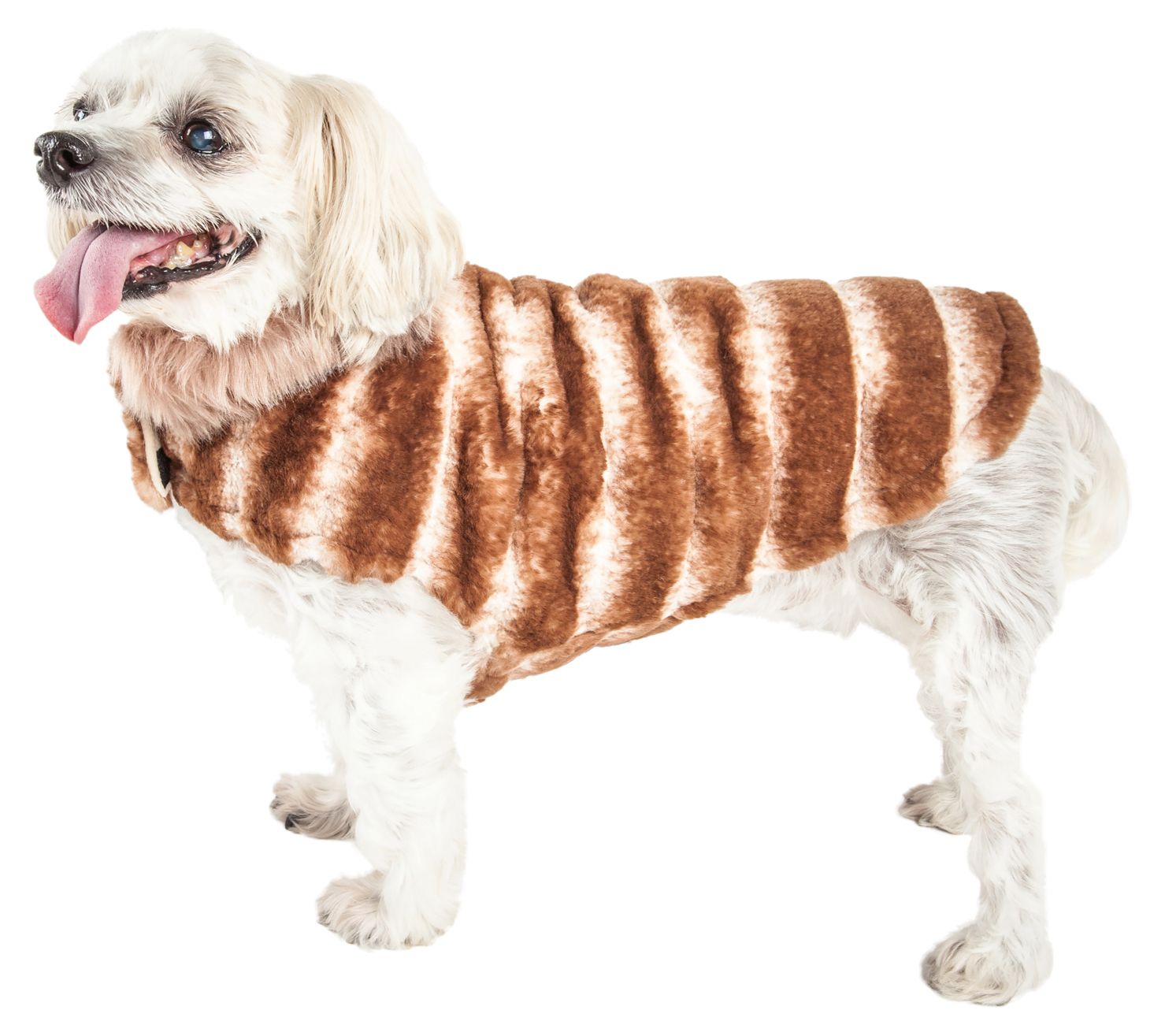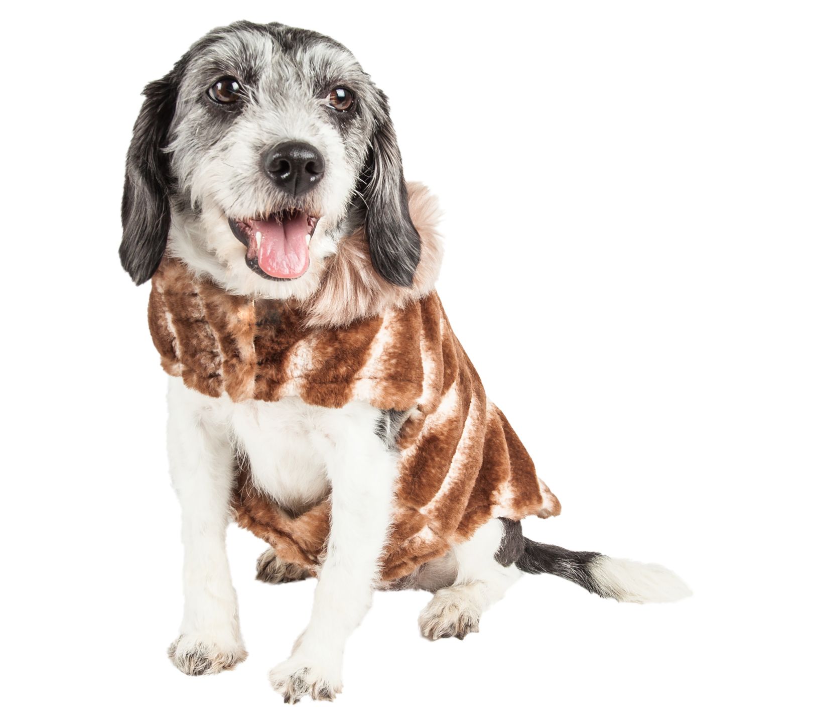 Your dog will feel like a diva all dressed up in this snuggly garment fashioned after a classic mink coat. From Pet Life.