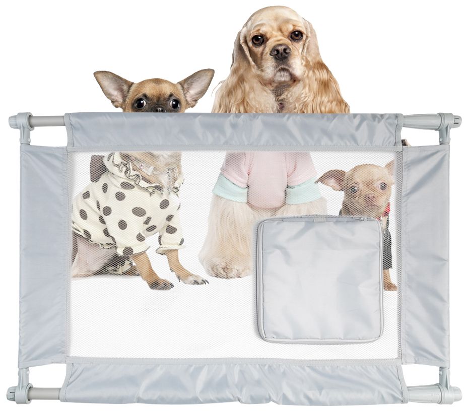 Help keep your pets safe and out of trouble with this adjustable folding pet gate. This unique design rolls up easily, extends, and grips onto door posts or openings. It even has an entrance door that zips open for your smaller dogs or cats to pass through. From Pet Life.
