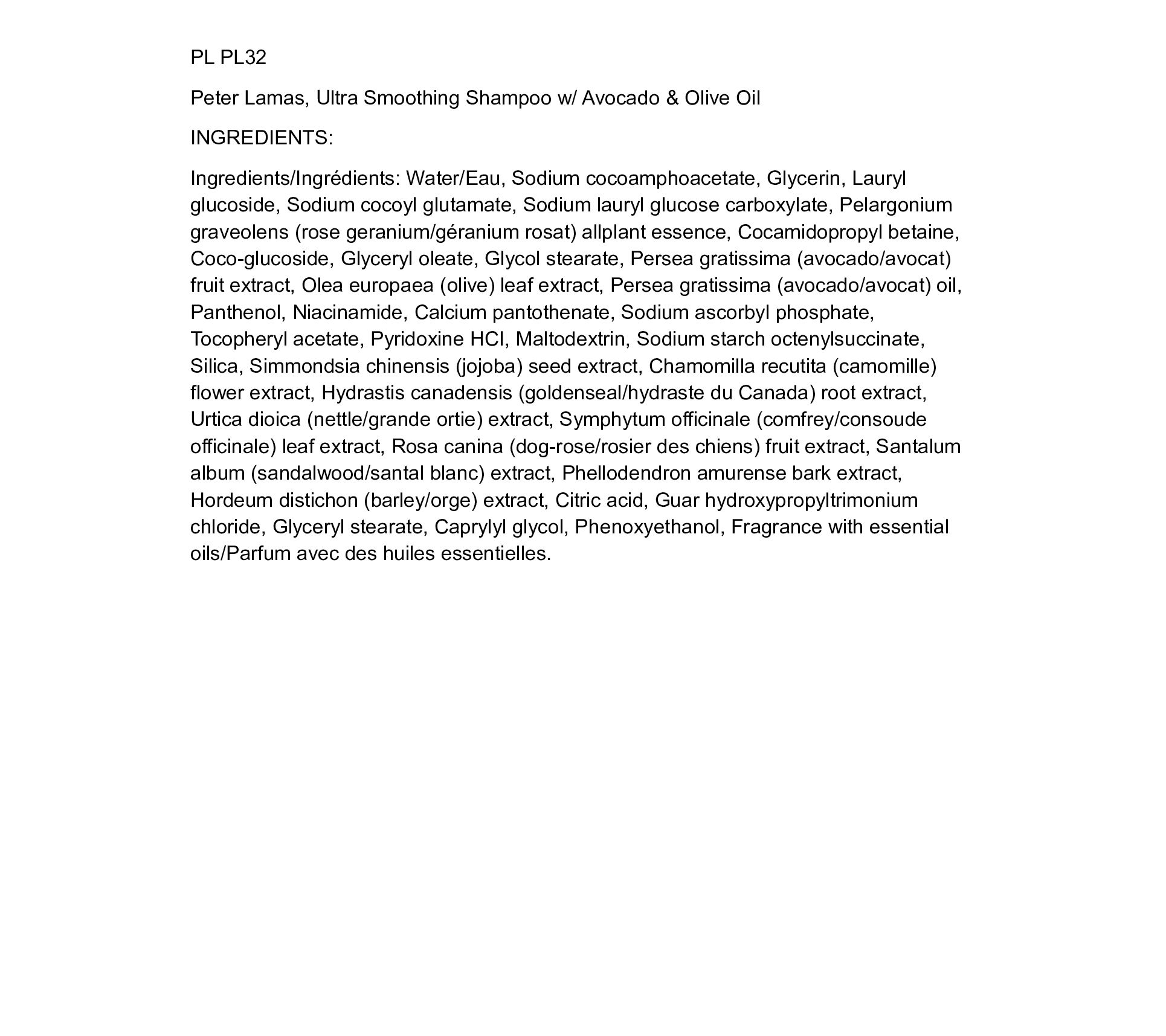 Peter Lamas Ultra Smoothing Shampoo w/ Avocado& Olive Oil