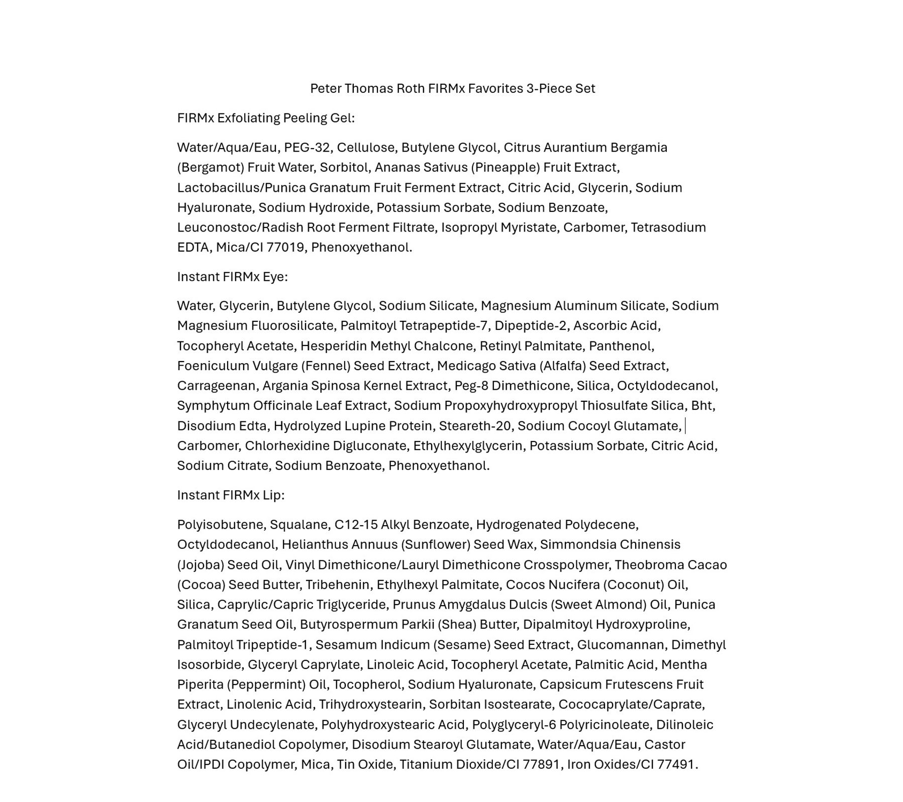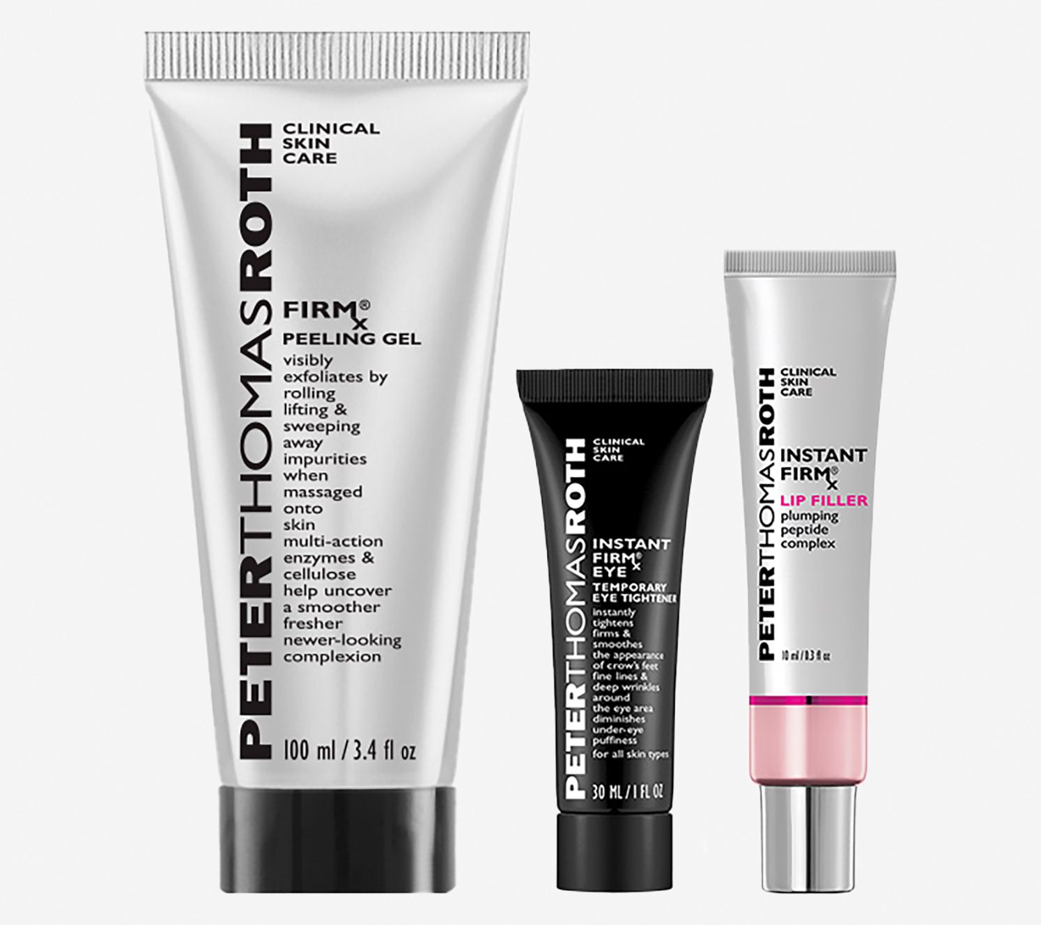 Your Peter Thomas Roth favorites are all here in one set -- fantastic finds for face, eyes, and lips! FIRMx Peeling Gel helps visibly roll, lift, and sweep away impurities when massaged onto skin. Formulated with pineapple and pomegranate extracts and cellulose, it helps to give the appearance of a smoother, fresher, newer-looking complexion.