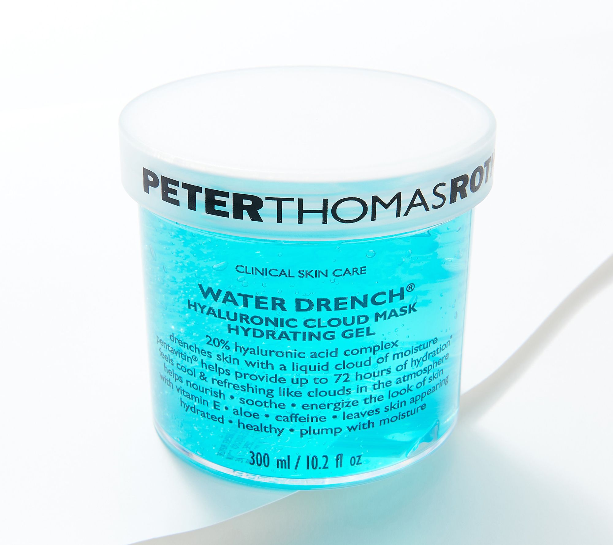 Drench your skin in a plump, liquid cloud of moisture that feels cool and refreshing. This mega-size hydrating gel mask contains hyaluronic acid, along with moisturizers that help skin feel moisturized and help to temporarily diminish the appearance of fine lines and wrinkles. Plus, it's packed with game-changing ingredients like Vitamin E, Aloe, caffeine, and pentavitin -- all to revolutionize your skin-care regimen.