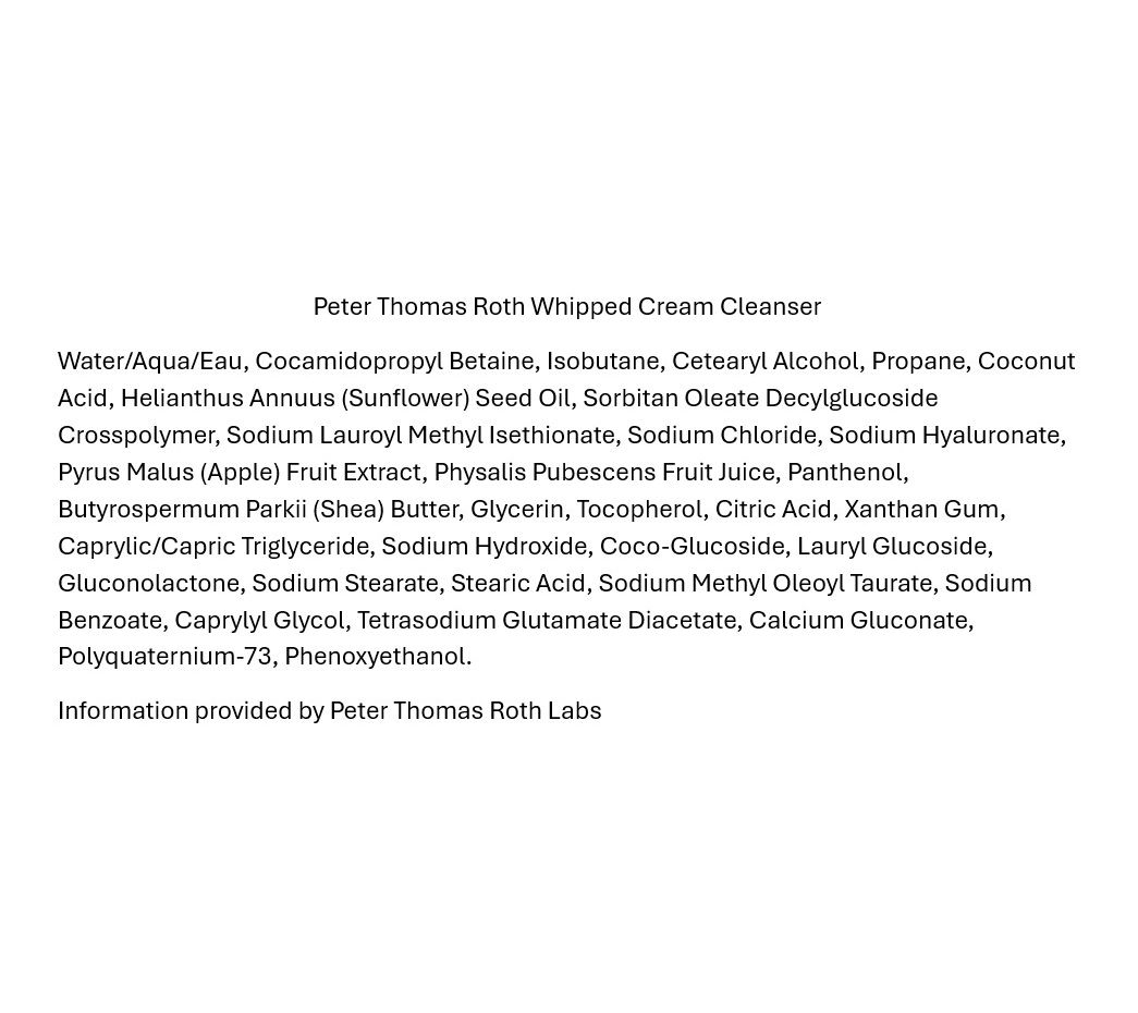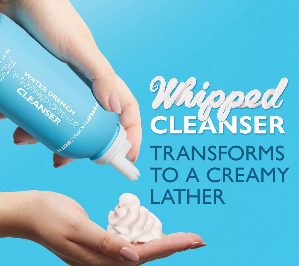 Peter Thomas Roth Water Drench Whipped Cream Cleanser treats your skin to a deliciously fluffy cleanse. The lightweight, hydrating facial cleanser transforms from a whipped cloud to a creamy lather, whisking away makeup, dirt, and impurities. Suitable for all skin types, this hyaluronic acid-infused formula helps skin feel fresh and clean without dryness or tightness. Apple extract, Provitamin B5, and shea butter help provide nourishment and antioxidant benefits, while sunflower seed oil and coconut acid help deep clean, leaving skin feeling cleansed with a healthy look. Fragrance-free.