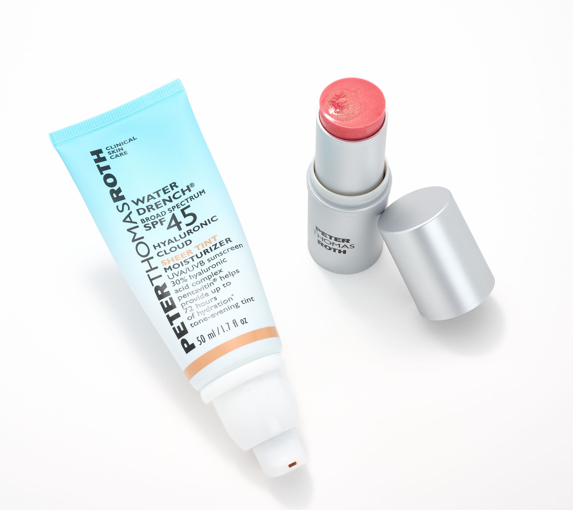 Savor every sun-kissed moment with this Peter Thomas Roth set that includes Instant FIRMx Collagen Bounce Blush Stick and Water Drench Broad Spectrum SPF 45 Sheer Tint Moisturizer.