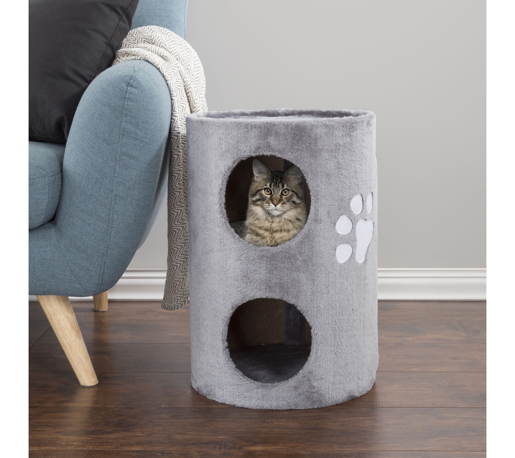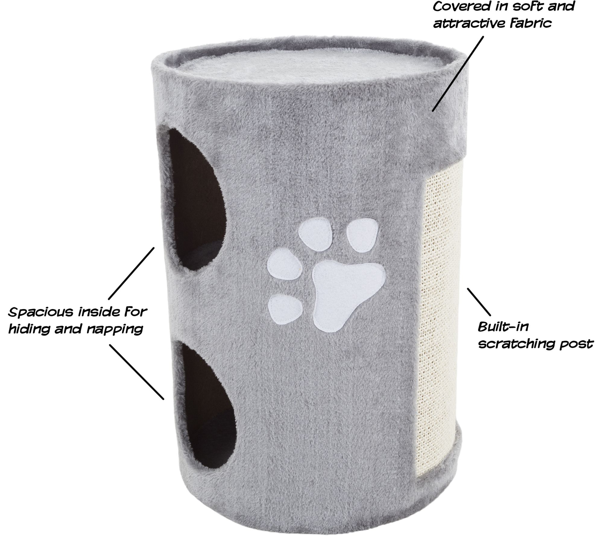 With two covered compartments, a soft plush fabric cover, and a scratching surface at the back, this cat condo is the ideal spot for your kitties to sleep, play, sit, and climb. From PETMAKER.