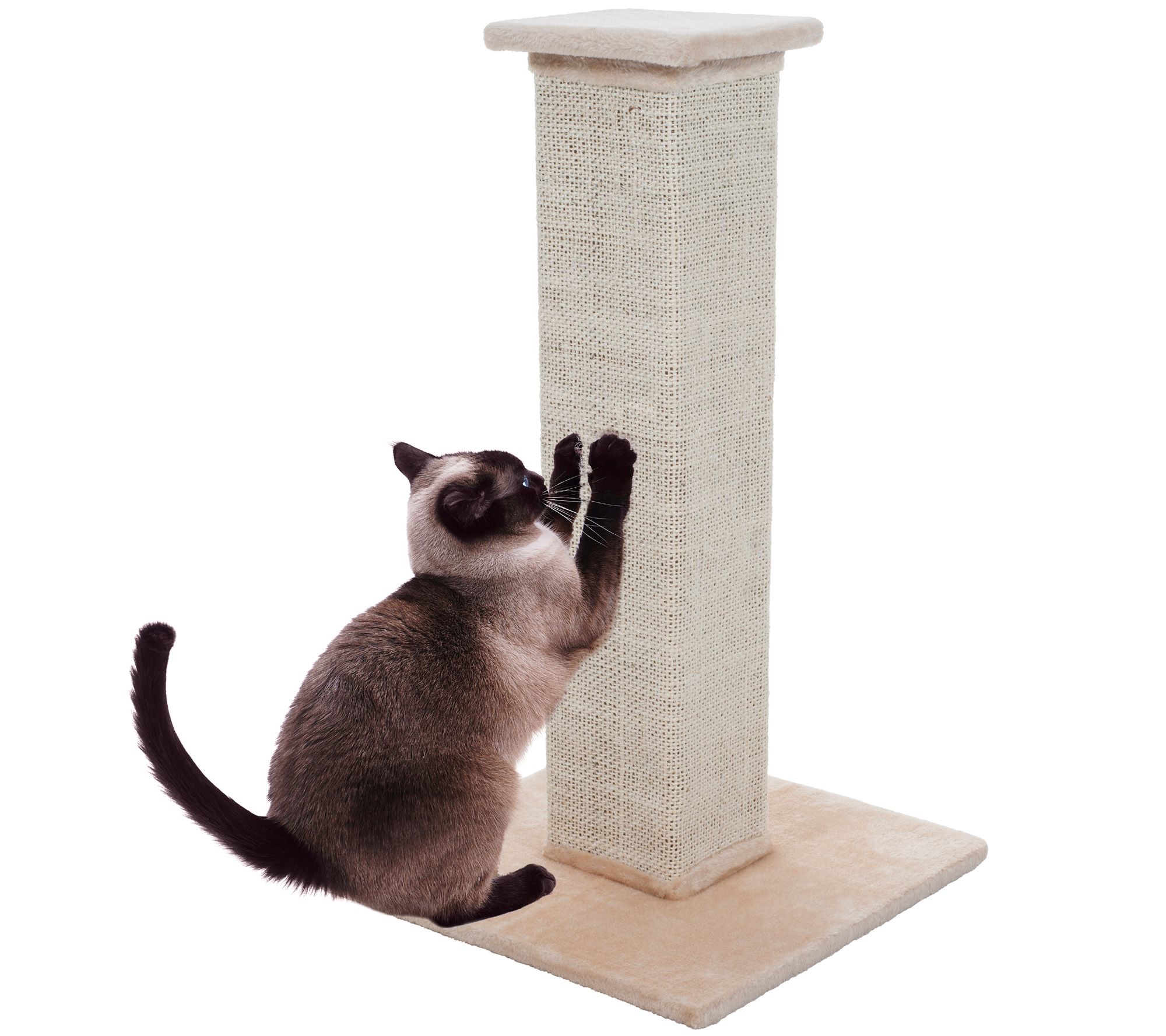 The cat's meow. Your cat will now scratch and stretch all over this Petmaker scratching post--and not on your furniture. The durable sisal burlap and wood construction and weighted, carpeted base make the scratching post the perfect personal territory for your cat to groom and relieve stress. From Petmaker.