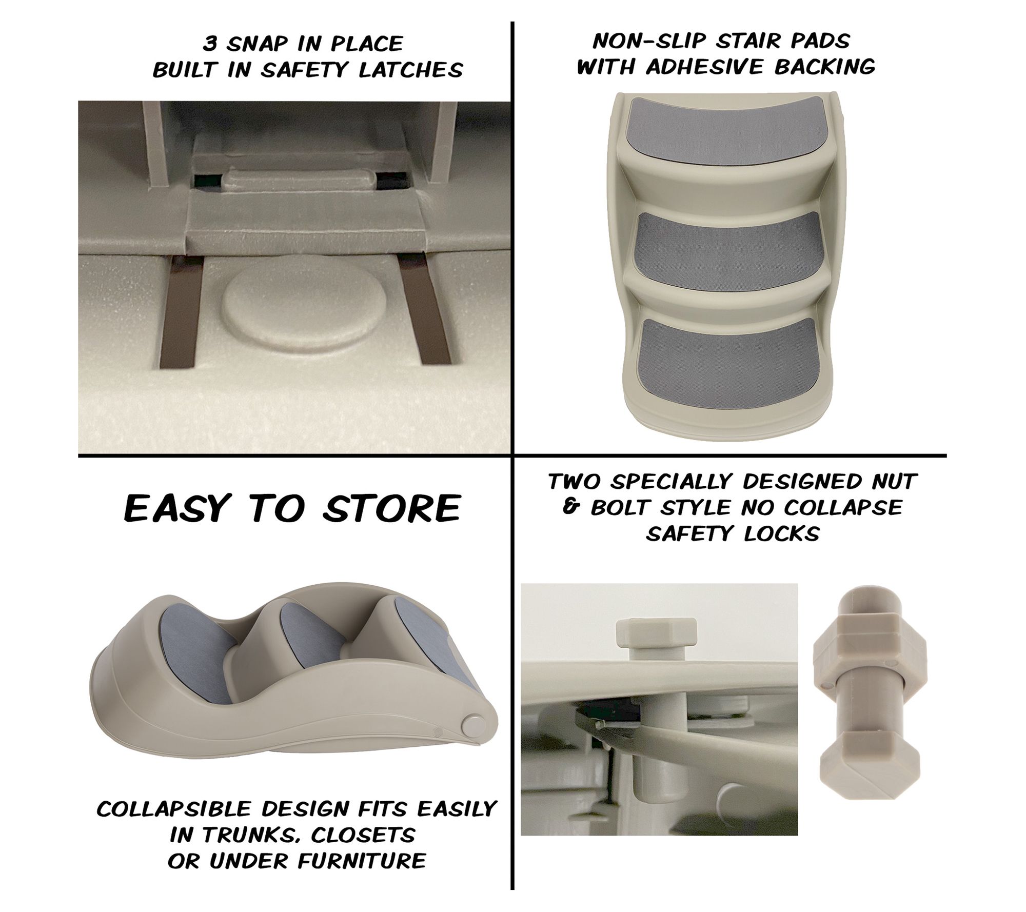 • Includes pet stairs and two safety locking pins