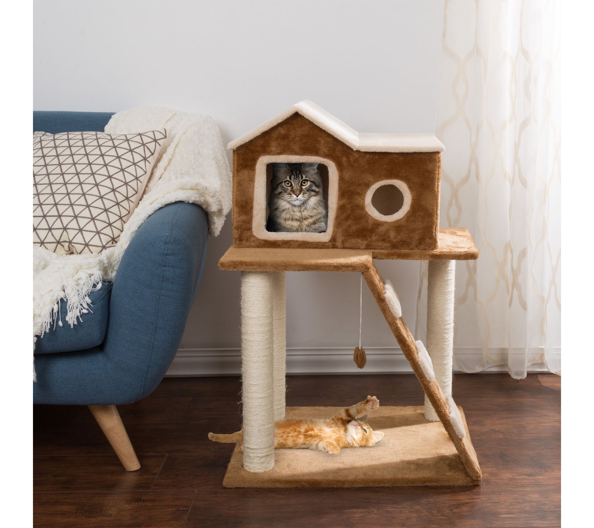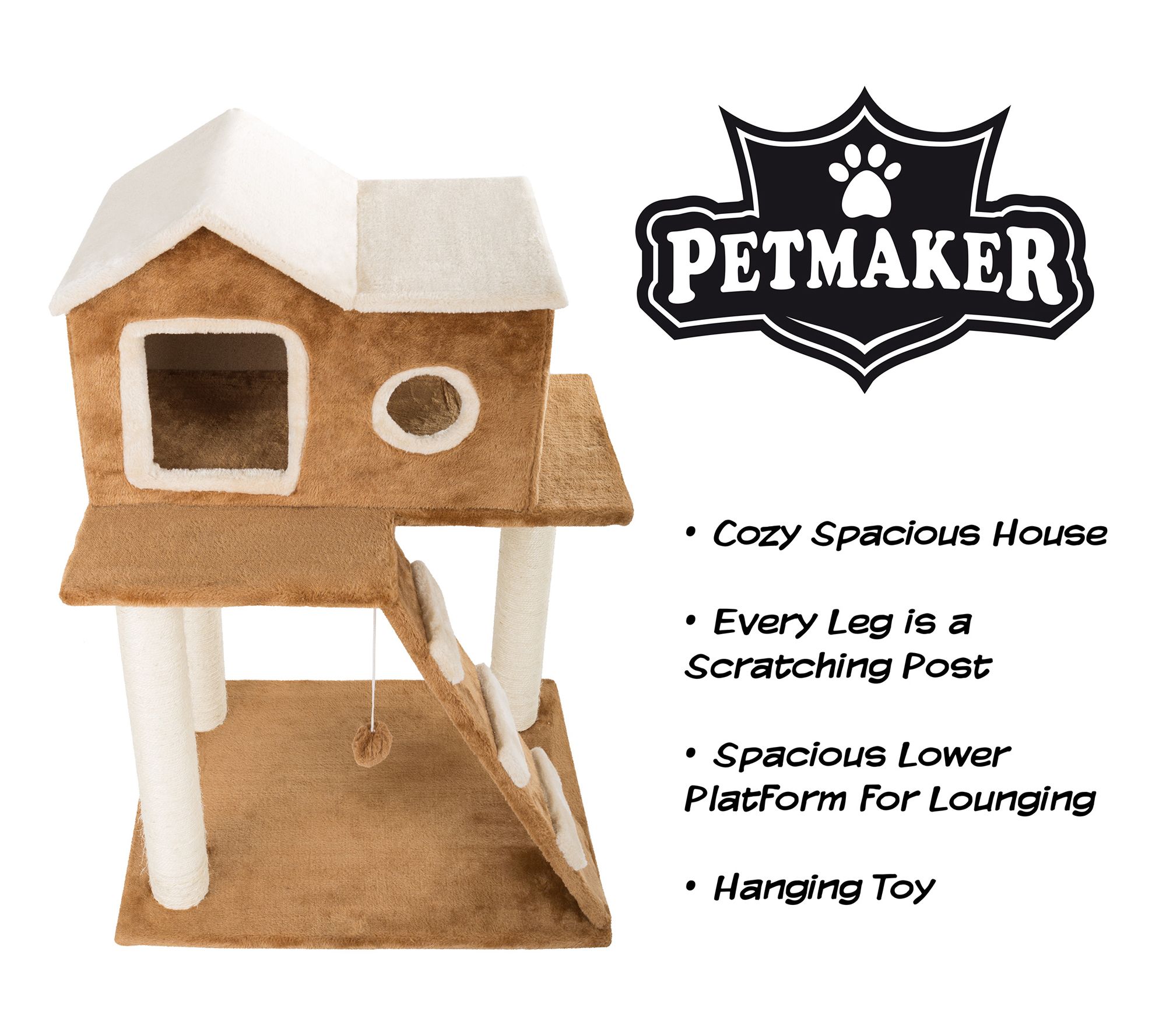 Give your feline friends the ultimate playground and cozy retreat with the Petmaker 3-Tier Cat Tree Tower. Specially designed for indoor cats and kittens, this multi-level cat tree features a sturdy carpeted base, a 3-step easy climb-up ladder, a spacious kitty house with a sloped roof that doubles as a perch, three sisal rope scratching posts, and a dangling ball toy for endless entertainment. The tiered 35"H design provides your cats with plenty of space to nap, snuggle, stretch, and play, making this tower the perfect addition to your home and a great solution to help deter your cats from scratching furniture. From Petmaker.