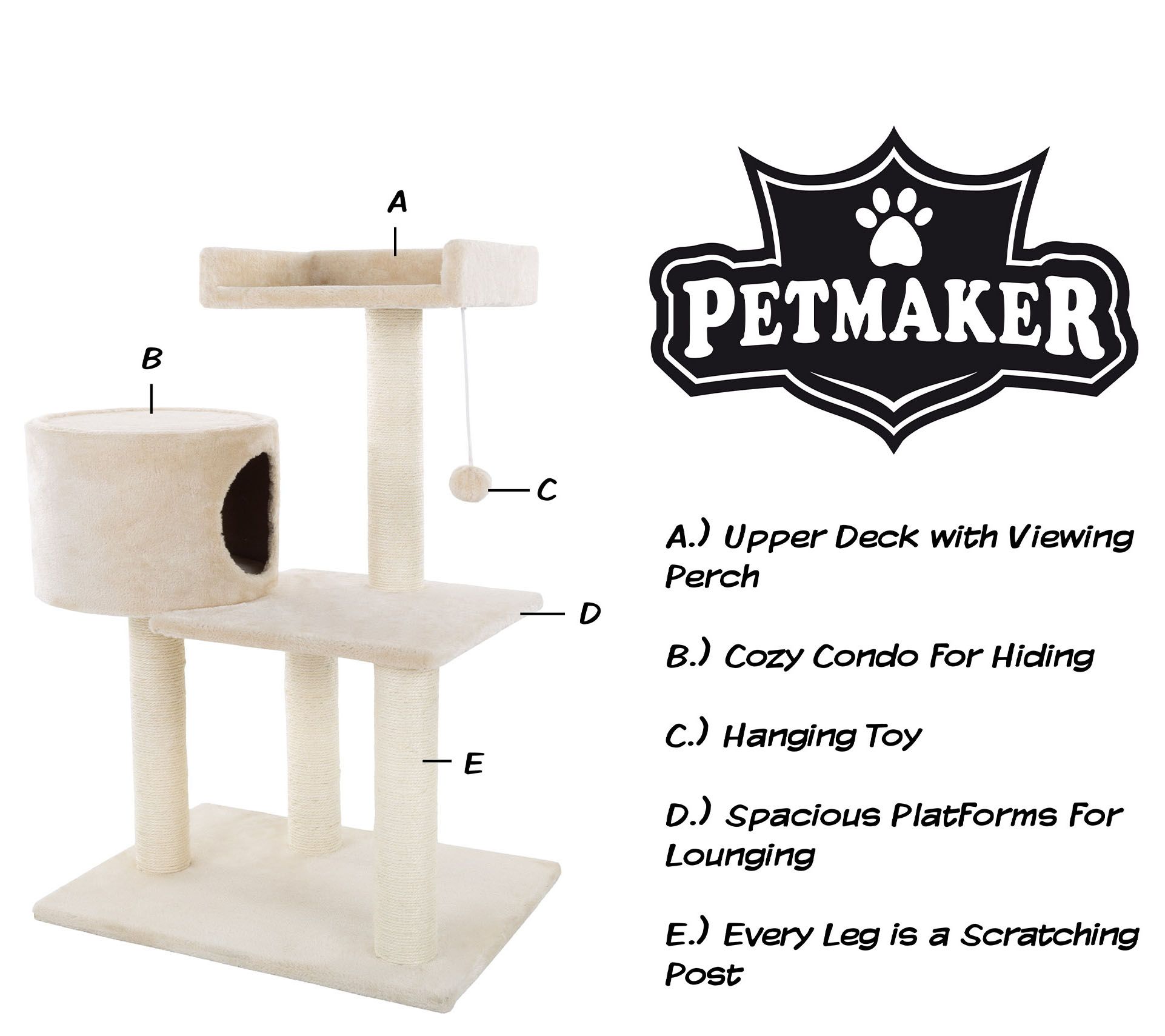 A comfy place for your cat to be curious, PETMAKER's multi-level activity tower gives feline friends somewhere to scratch, jump, play, and hide. And when it's time for a catnap, there's a cozy covered condo to curl up in! From PETMAKER.