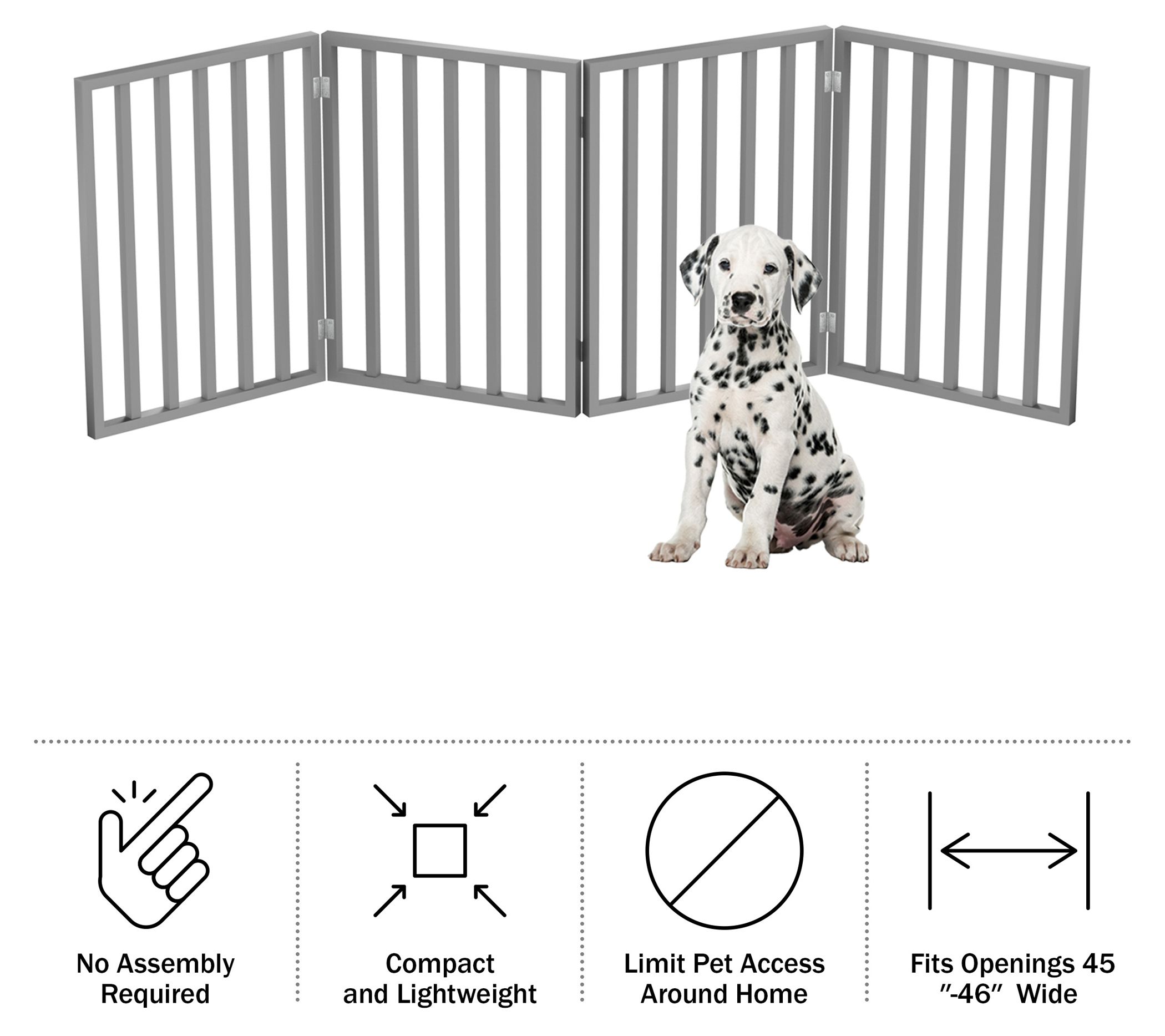 Keeping your pets out of areas they don't belong is easier than ever thanks to this four-panel indoor foldable dog fence. This stylish wooden gate is perfect for blocking off doorways, hallways, and stairs, while the lovely gray finish complements any home decor. From Petmaker.