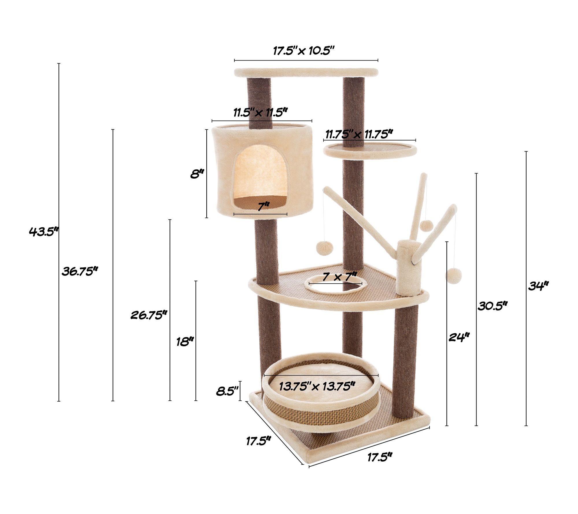 • Measures approximately 17.5 x 17.5 x 43.5 inches; pet bed 13.75 inches in diameter; condo 11.5 inches in diameter by 8 inches high