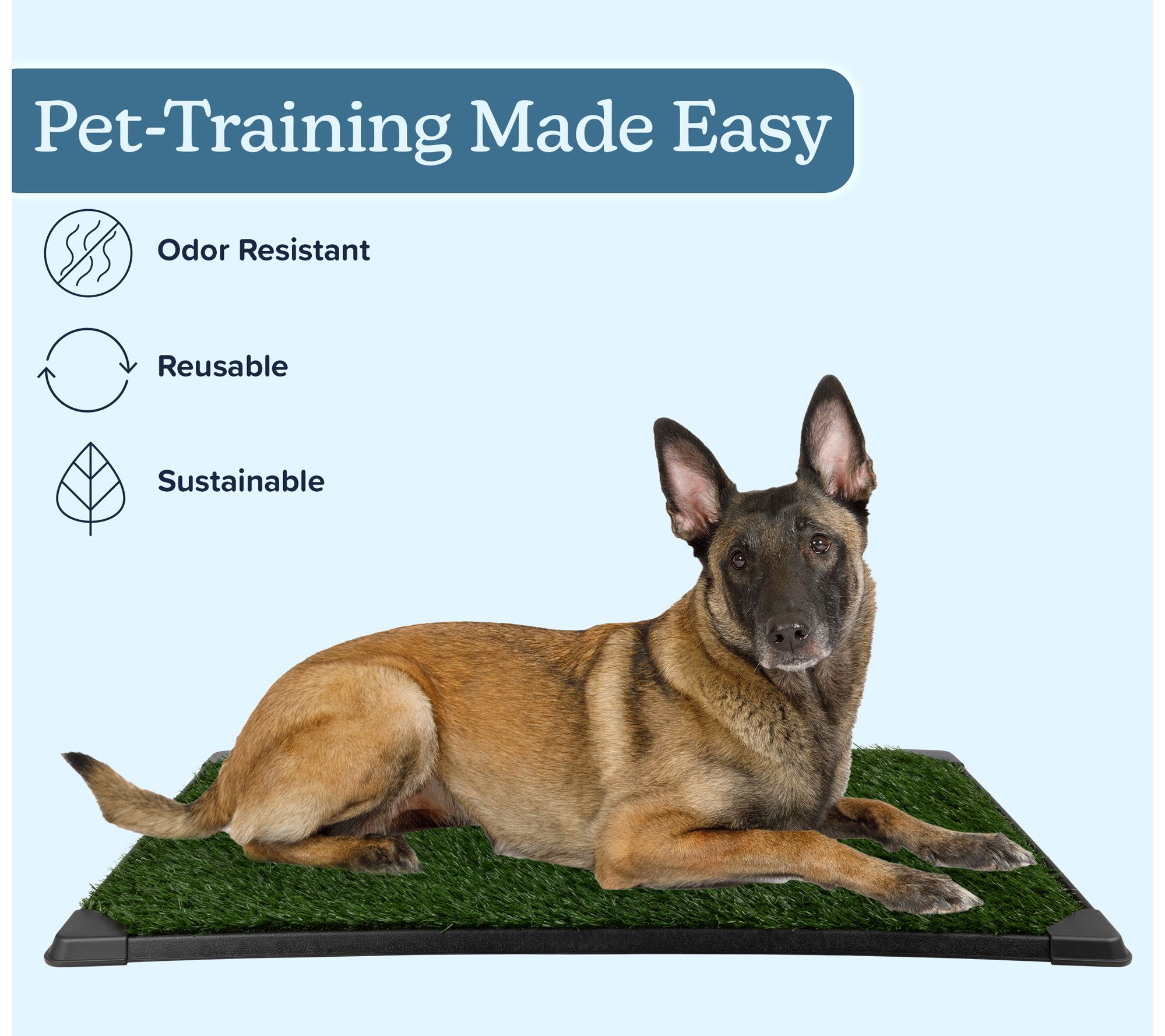House-training your puppy or supporting an older dog is less stressful with this artificial grass training pad. The four-layer dog litter box provides a dedicated spot for your pet to go indoors or on the balcony, combining convenience and cleaner living for apartment dwellers, busy owners, or rainy days. From Petmaker.