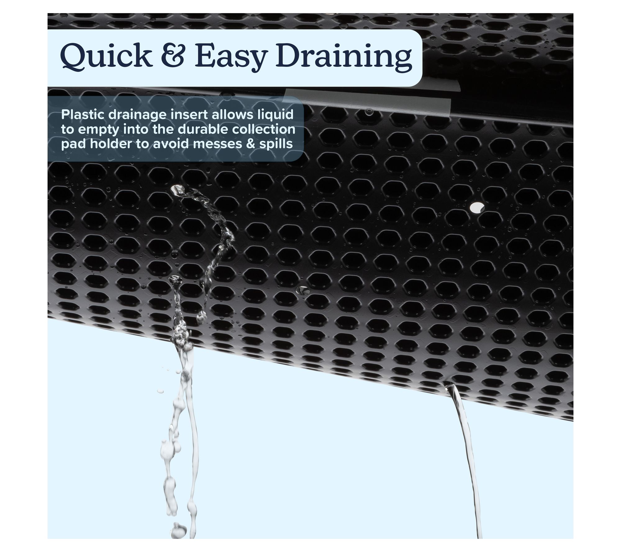 • Four-layer system with odor-resistant mat, drainage insert, and collection tray