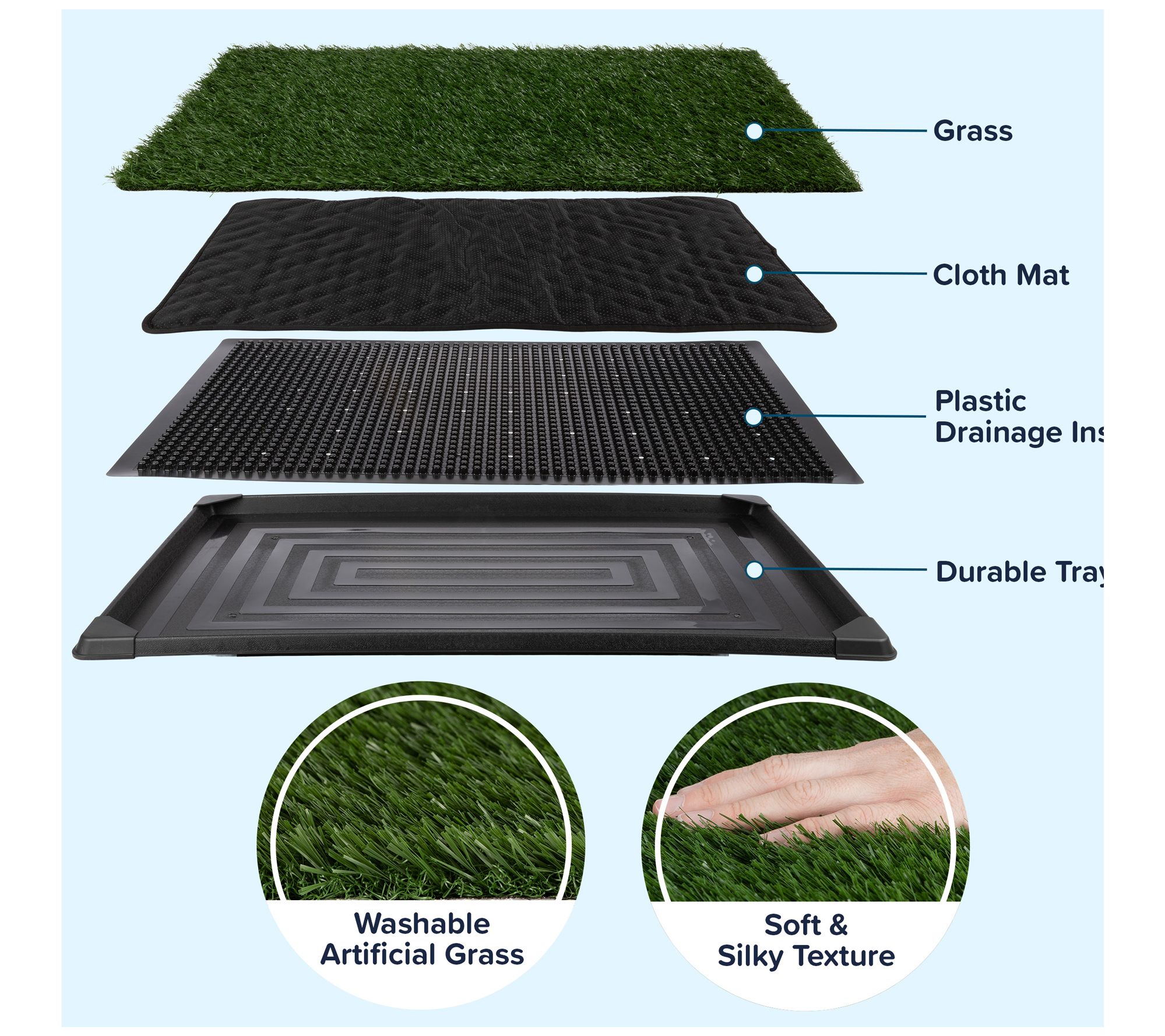 • Includes artificial grass pad, cloth mat, drainage insert, and puppy pad holder