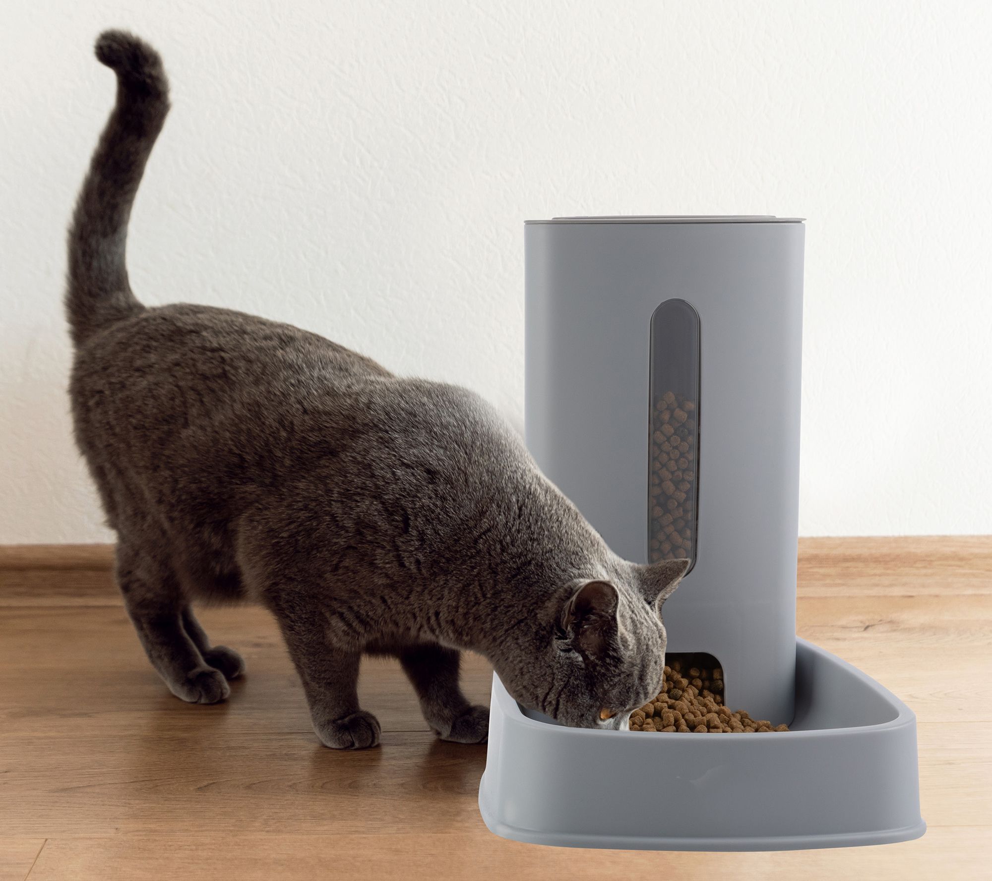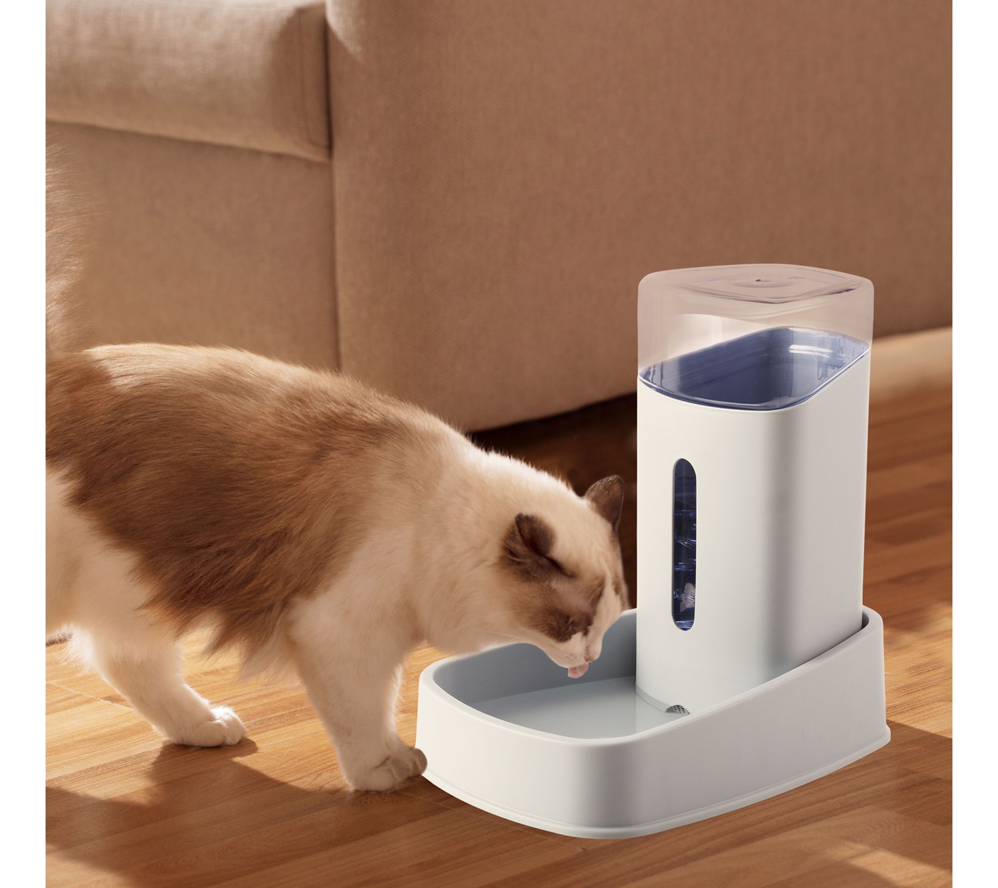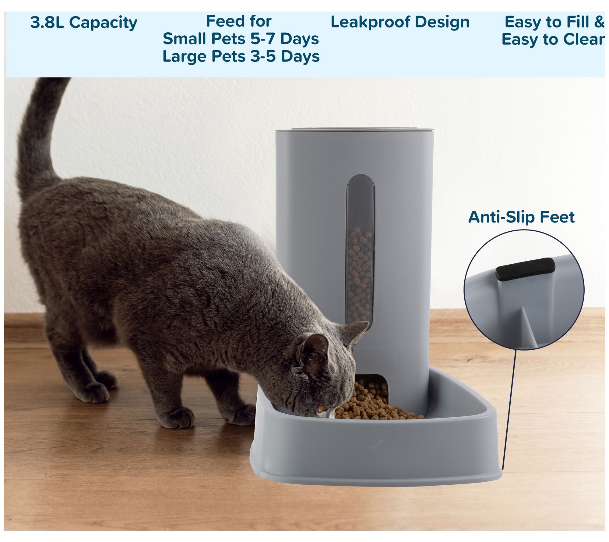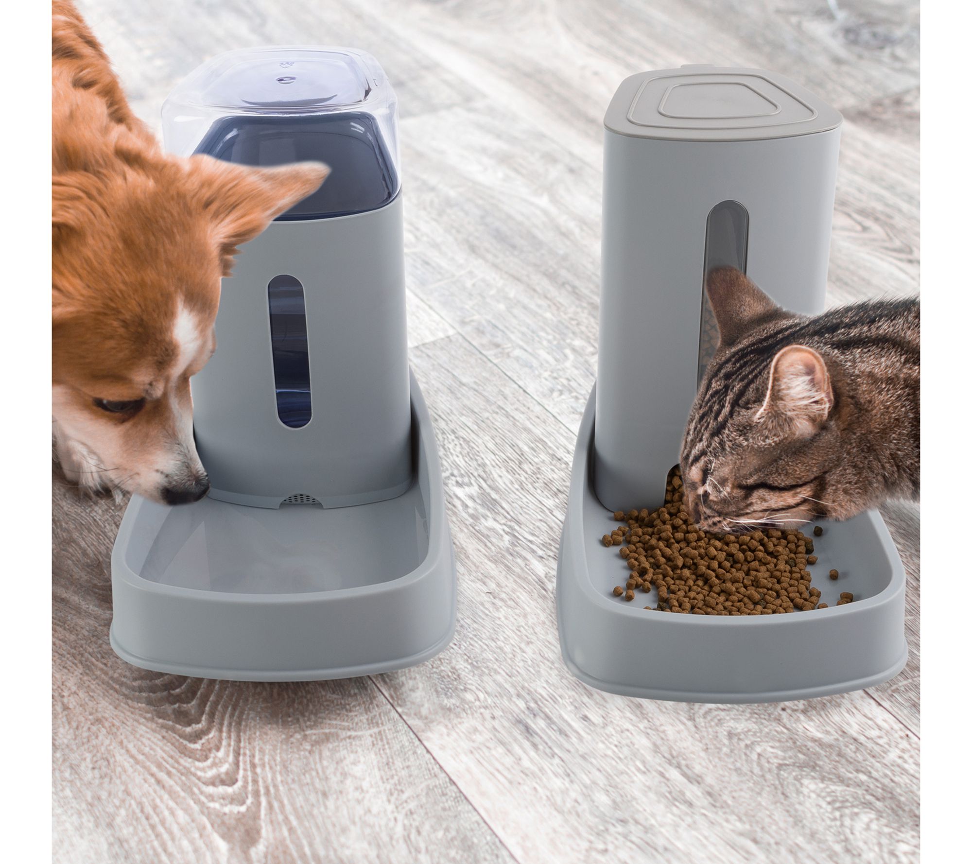 Keep your cats, dogs, or even ferrets fed and happily hydrated with this convenient set of two automatic pet feeders. The gravity-fed bowls provide a steady supply of food and water, so you can enjoy peace of mind when you're away or busy. Each feeder's generous capacity makes it easy to leave your pets cared for. From PETMAKER.