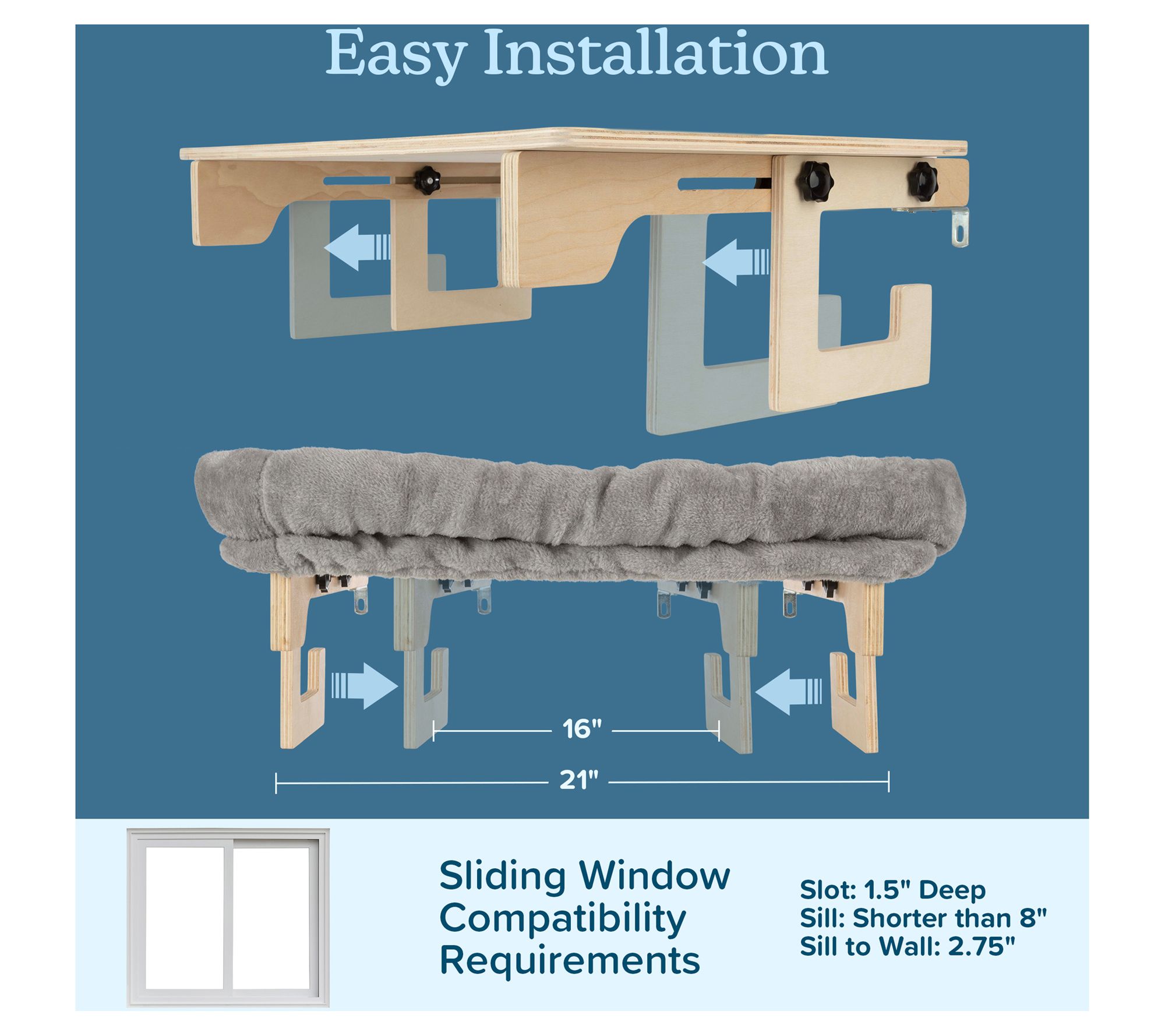 Petmaker Cat Bed for Window Perch Hammock withturdy Frame