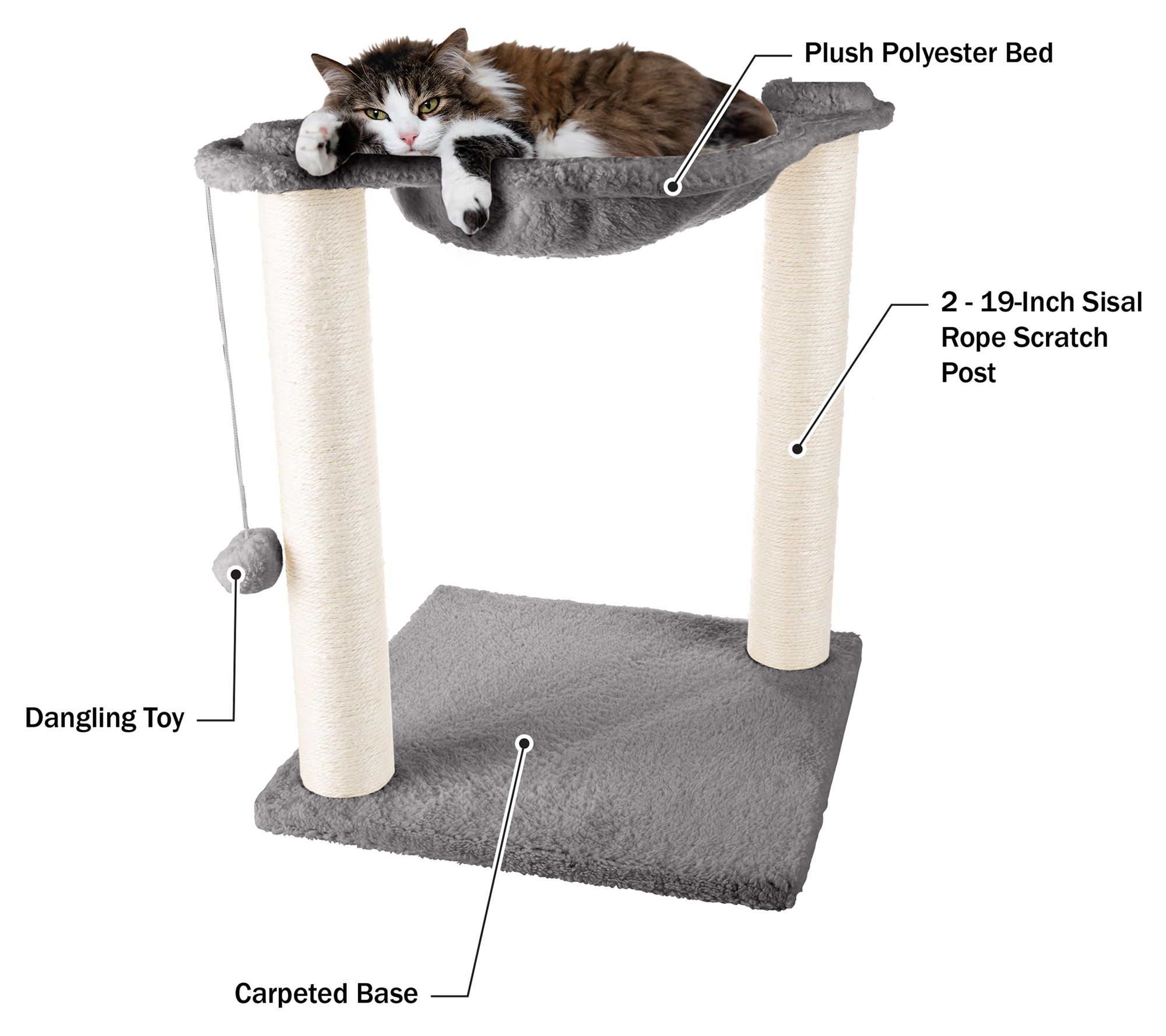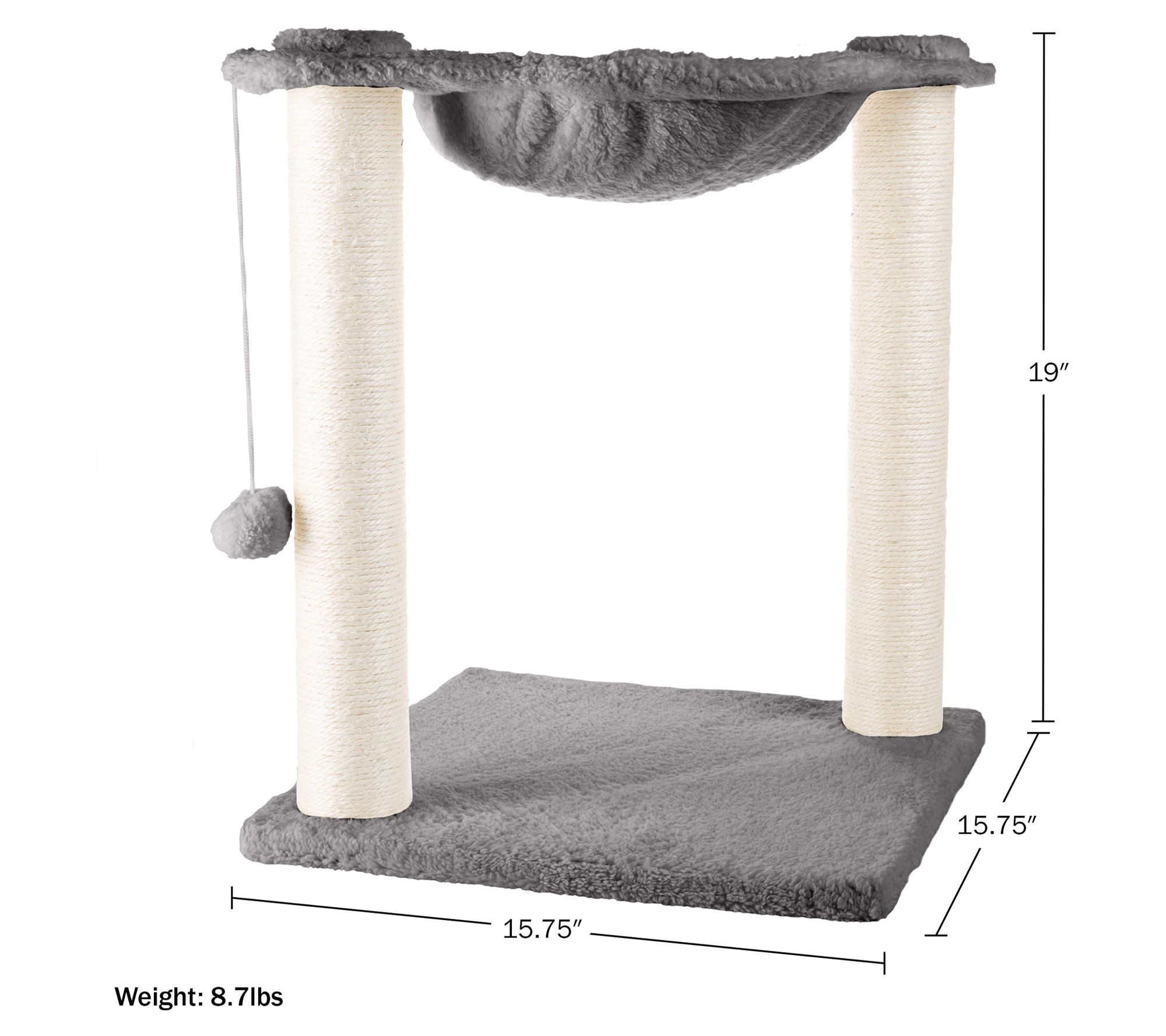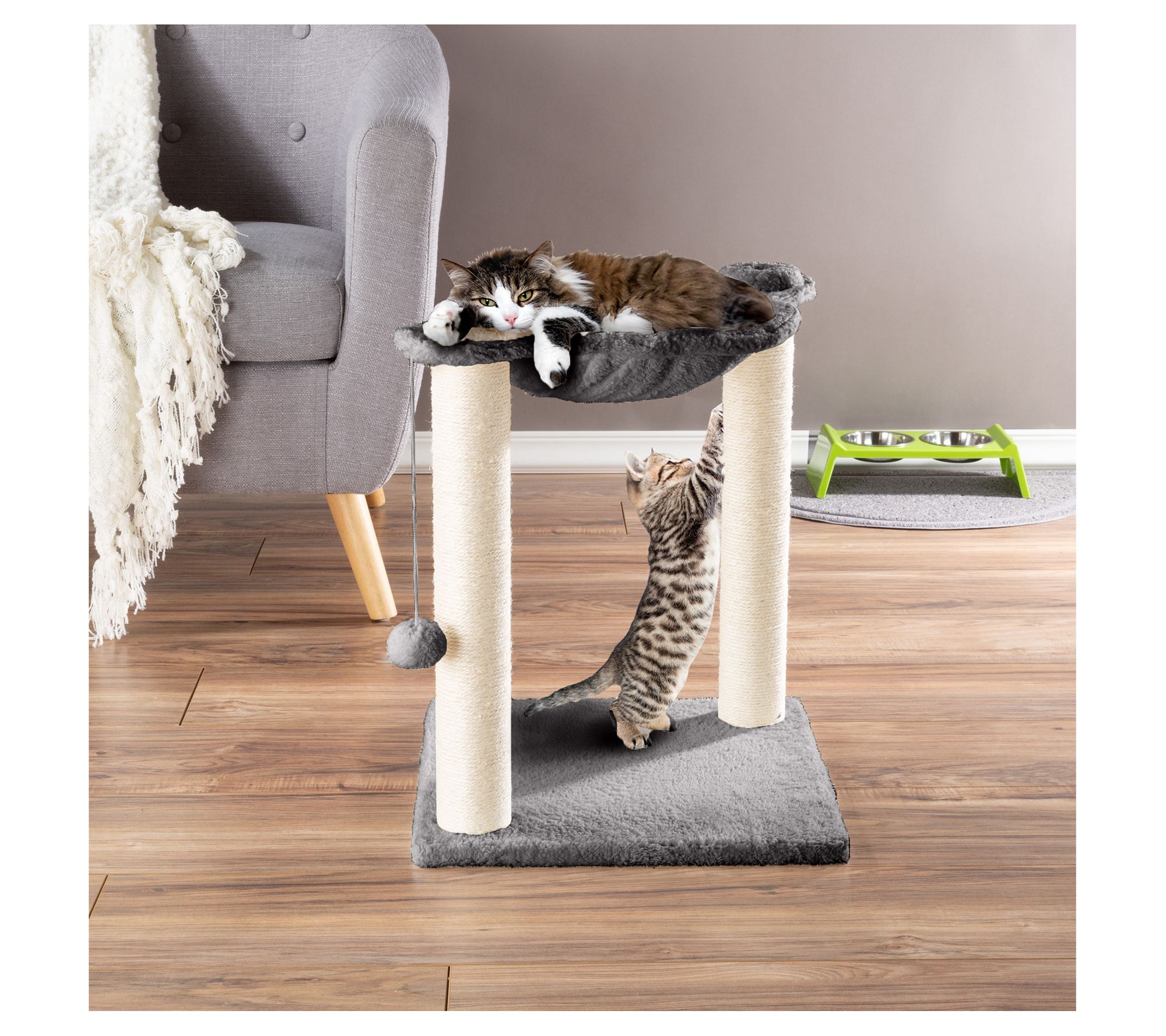 Give your feline friend the ultimate play and relaxation spot with the Petmaker cat hammock with scratching posts. This compact cat tree features sisal rope scratching posts, a hanging toy, and a cozy polyester bed, perfect for both large adult cats and kittens. From Petmaker.