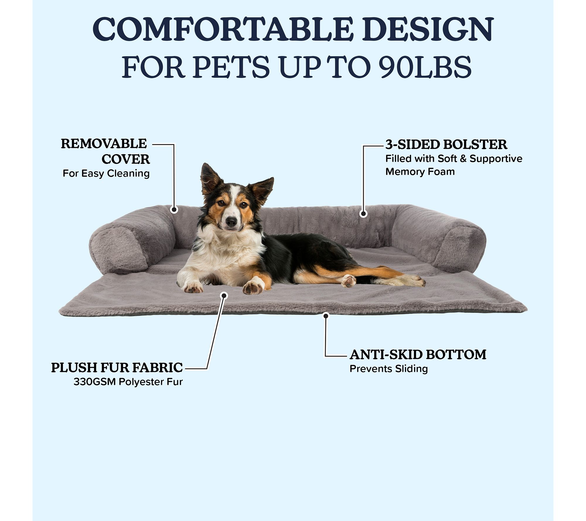 Give your four-legged friends a comfortable and cozy place to curl up and rest while protecting your furniture with the Petmaker dog bed couch cover. The plush polyester fur fabric and three-sided bolster filled with shredded memory foam offer perfect head and neck support. With an anti-slip bottom and a removable cover for easy cleaning, your pet will love this versatile and snug spot. From Petmaker.