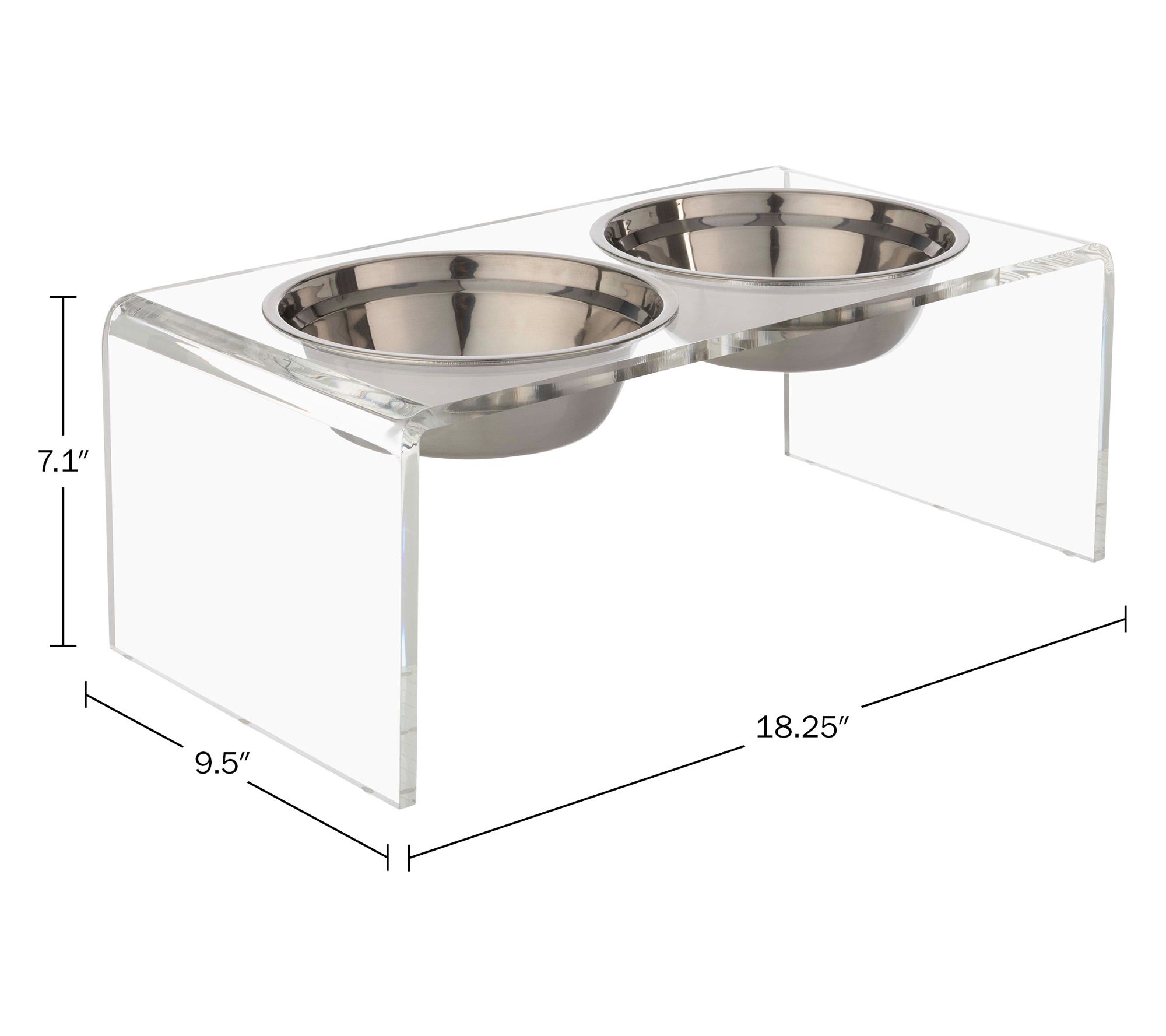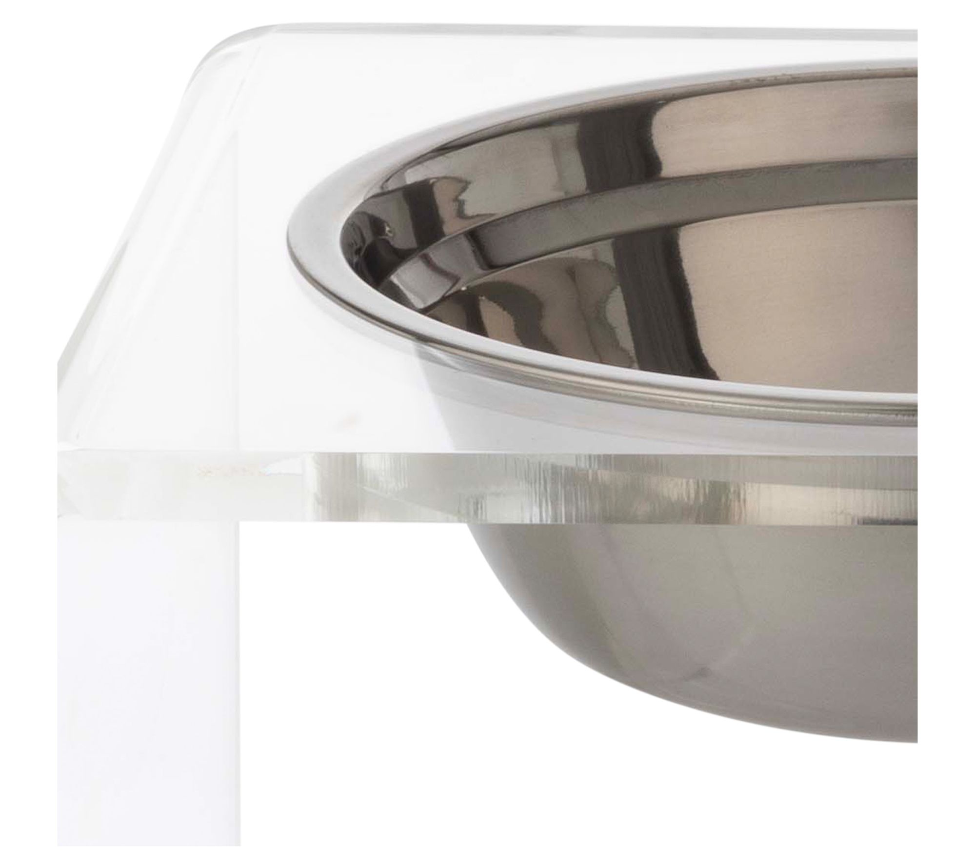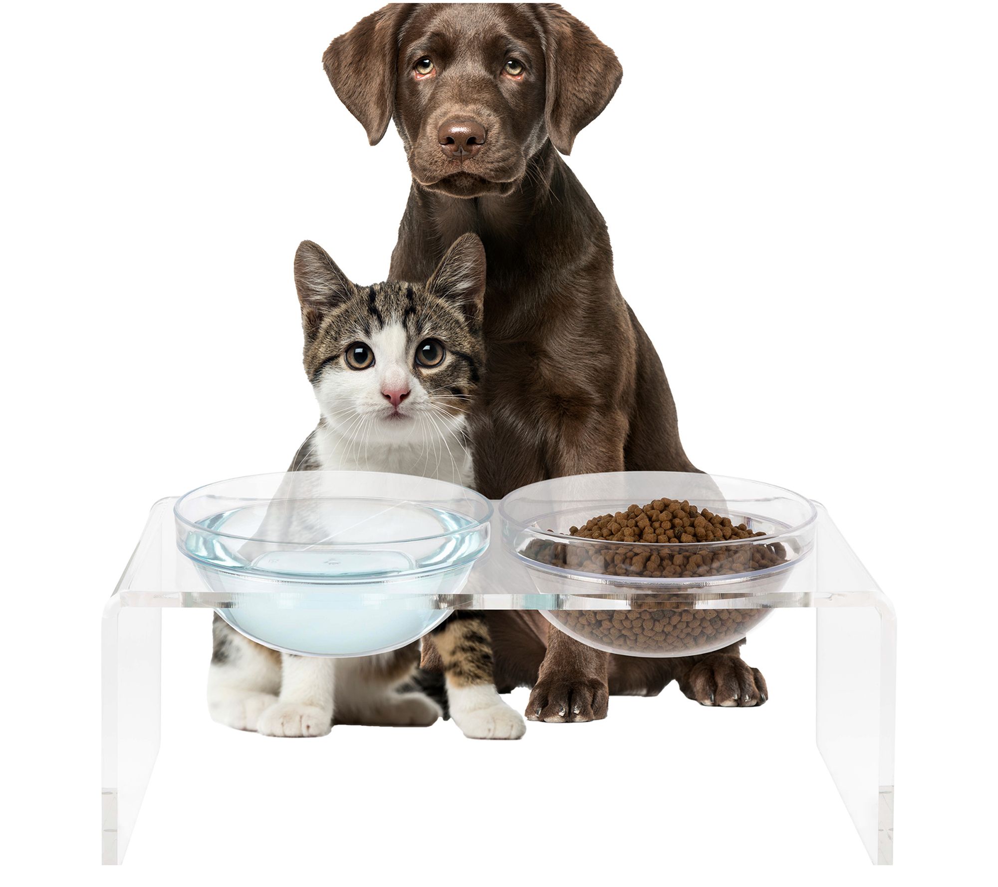 Mealtime gets an upgrade with this elevated pet bowl stand, designed to help your cat or dog enjoy greater comfort and better posture while eating. It includes two stainless steel and two plastic bowls, so you can serve food and water together or offer wet and dry options side by side. The modern, clear acrylic stand keeps bowls secure and looks stylish in any home. From PETMAKER.