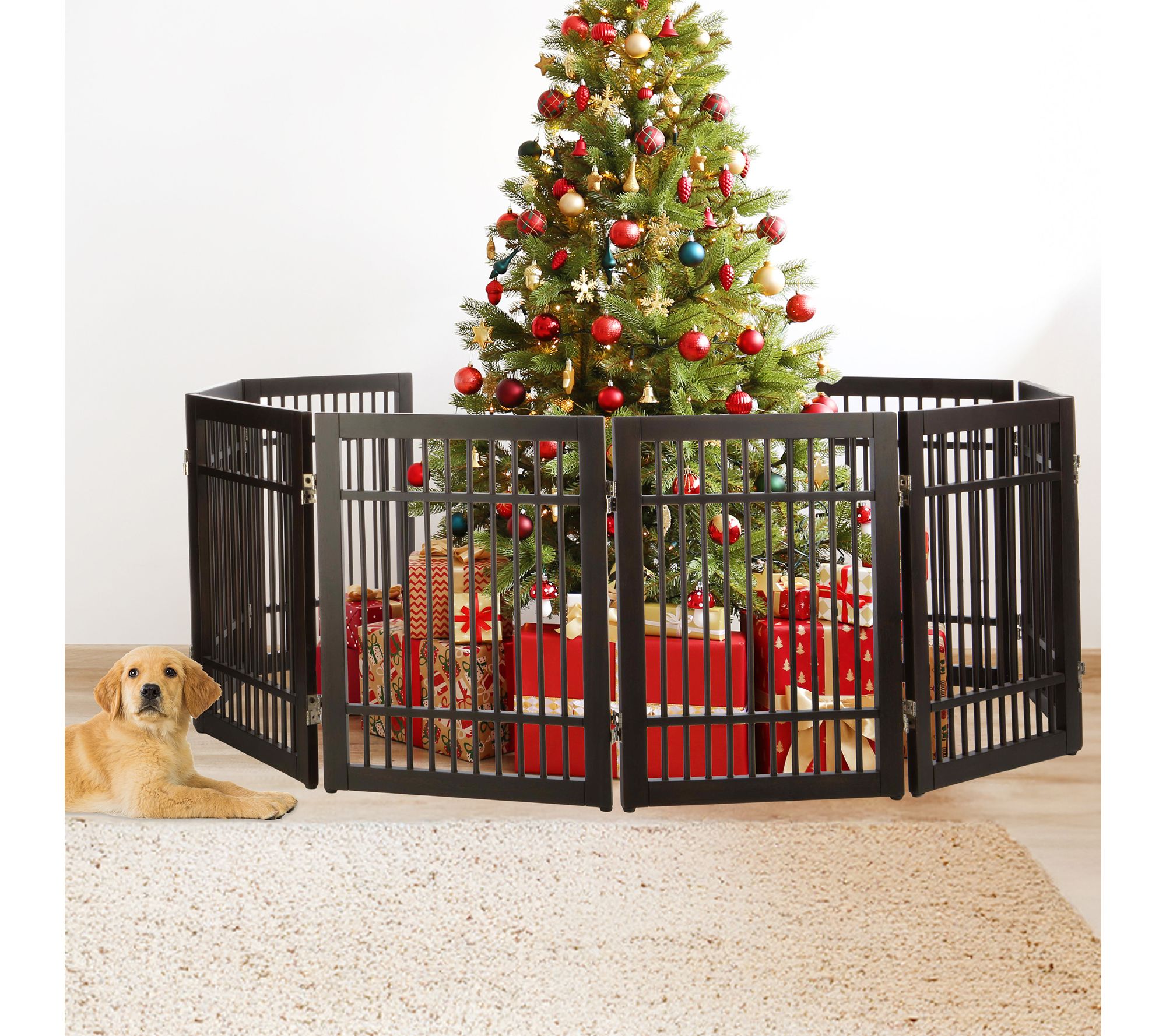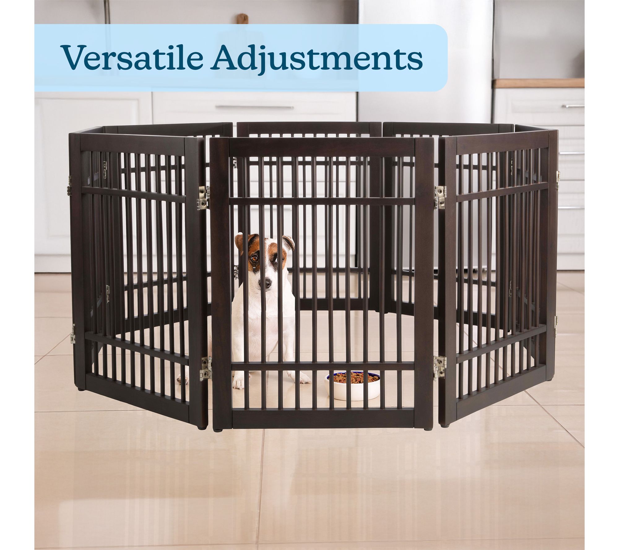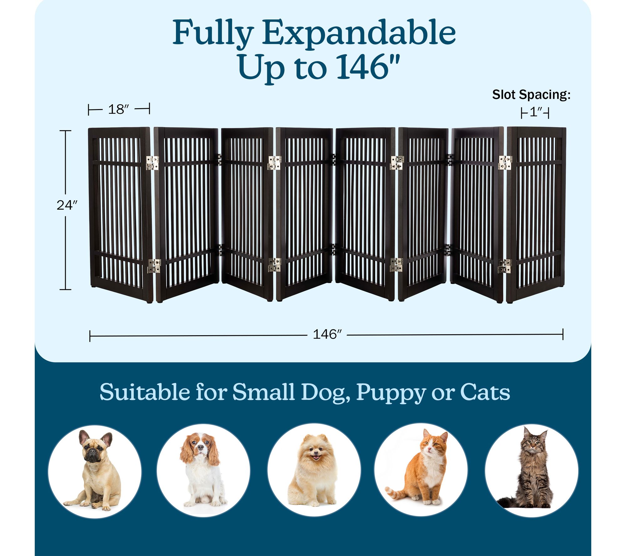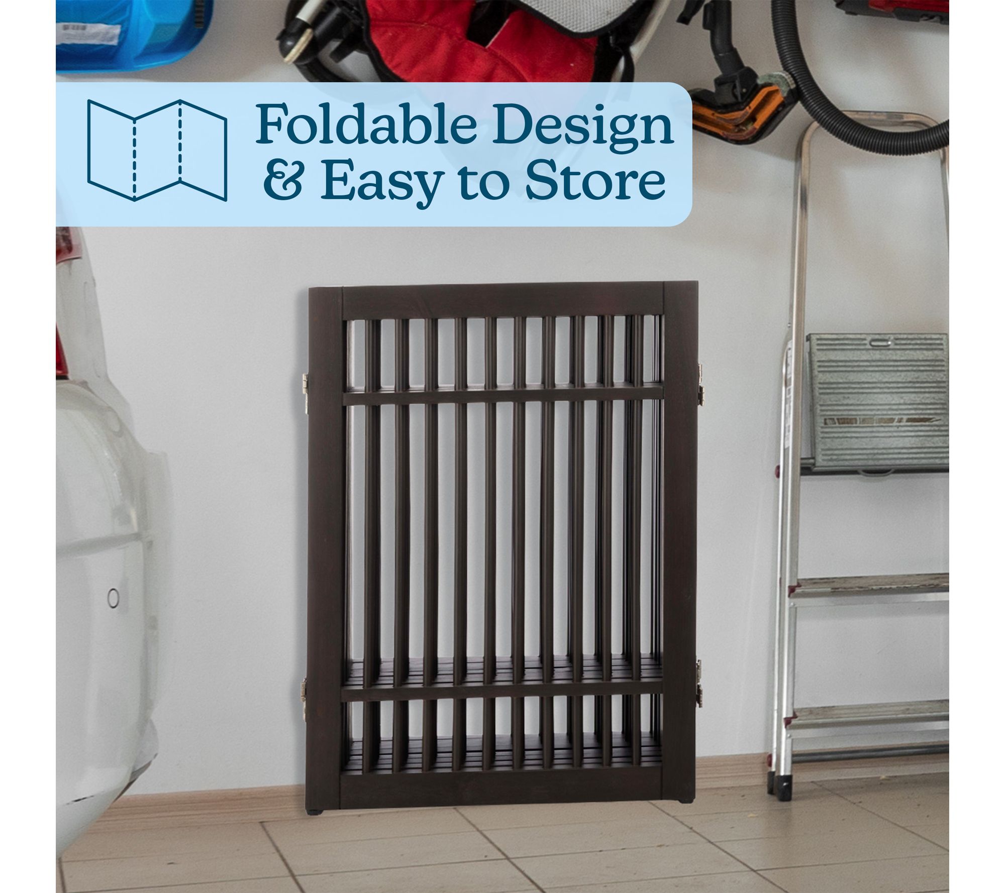 Keeping your furry friends safely contained while matching your home's decor is easy with this eight-panel foldable pet gate. The freestanding design makes setup simple in doorways, hallways, or at the top of stairs, and it folds down for convenient storage or travel. Whether you need a stylish solution or a flexible barrier, this indoor wood and metal fence adapts to your space. From PETMAKER.
