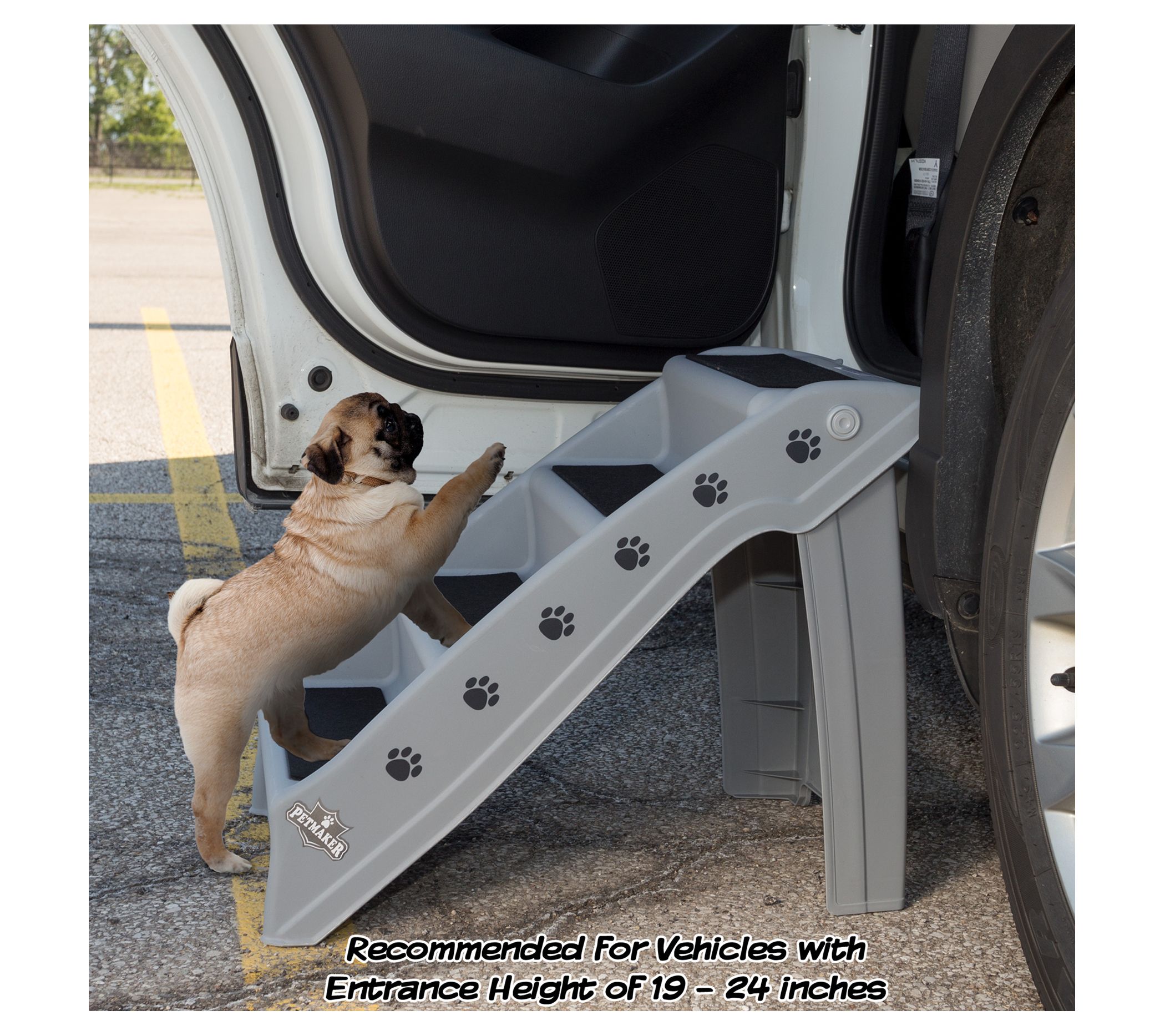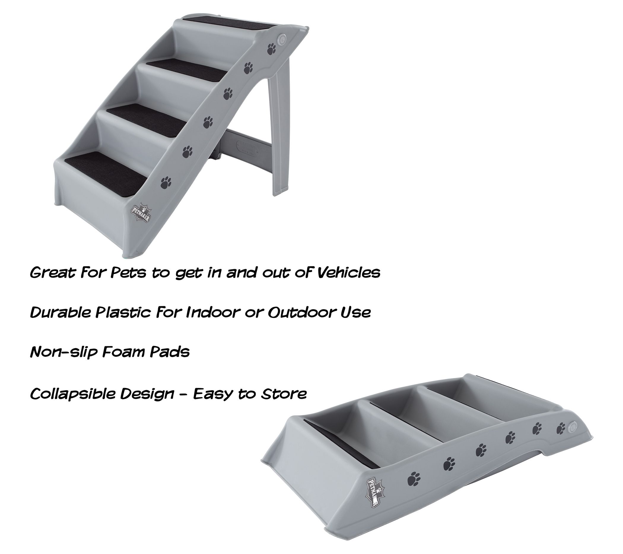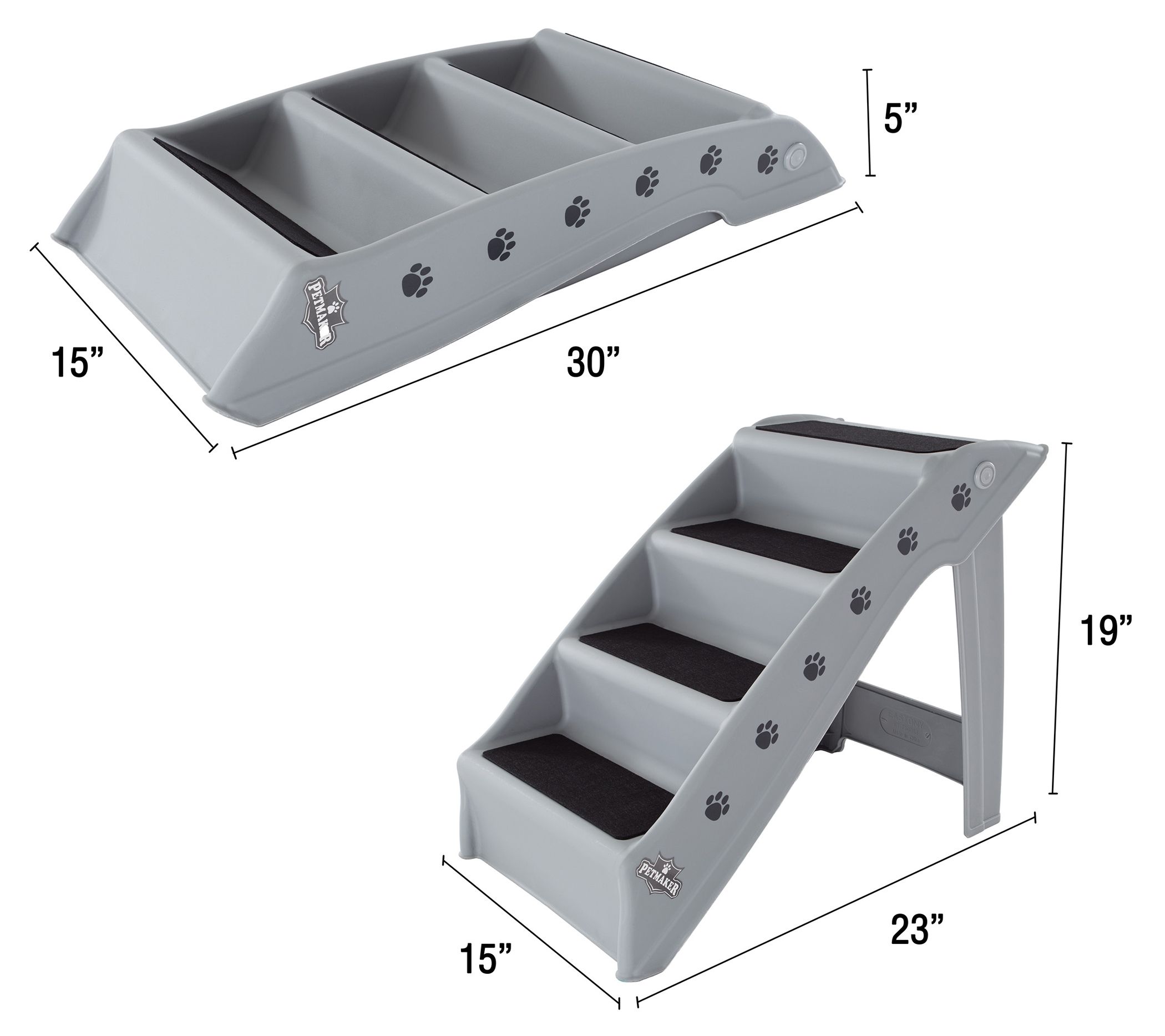 Help your furry friends reach their favorite spots with these pet stairs. Ideal for small dogs, cats, puppies, and senior pets, these foldable stairs offer a safe and comfortable way to access high beds, cars, or trucks. The lightweight, durable design and carpeted pads ensure easy use and prevent slippage. From Petmaker.