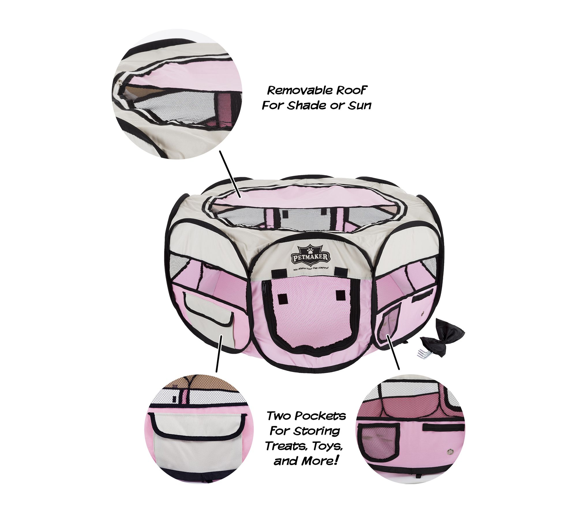 • Includes playpen, removable roof, stakes