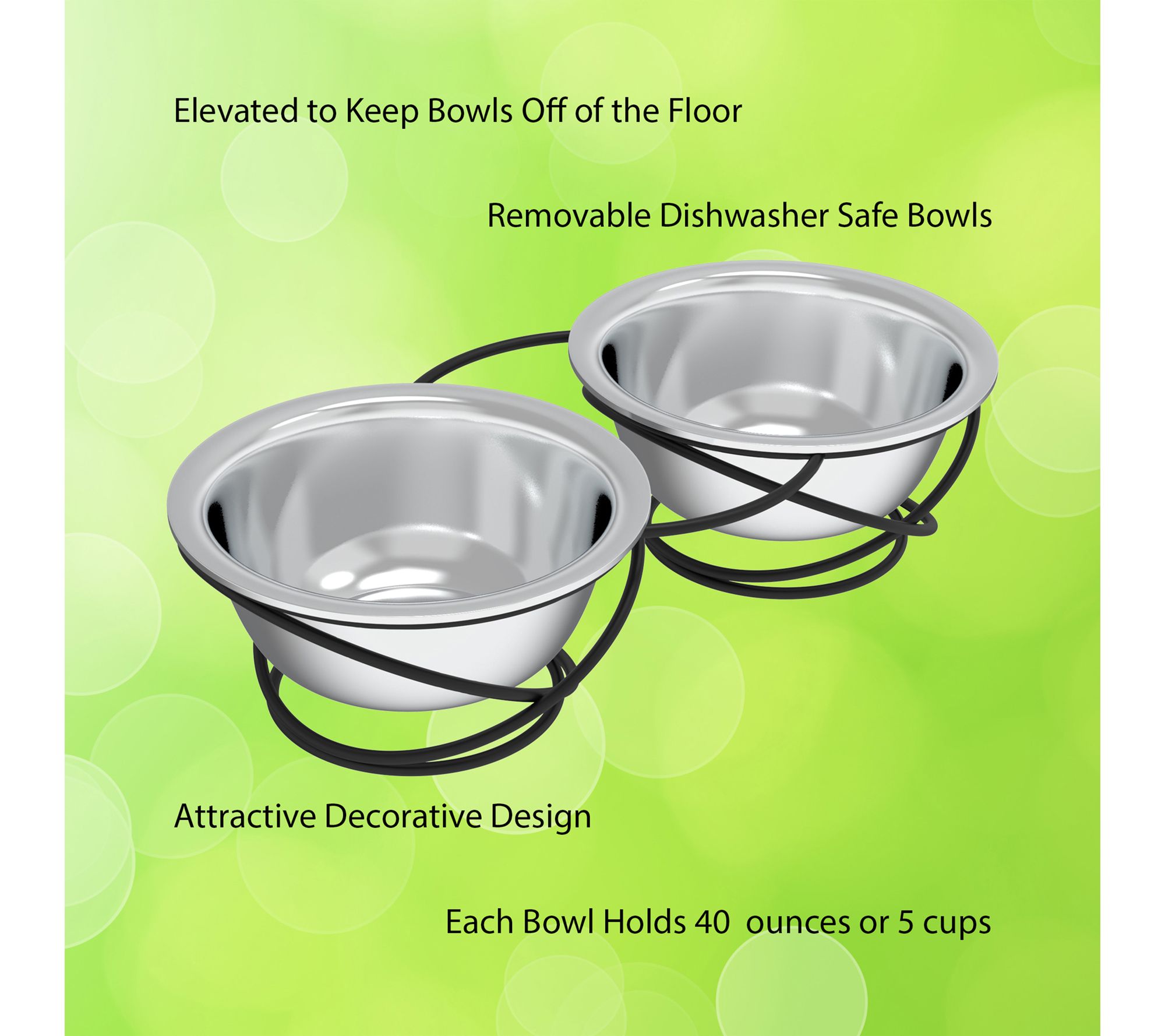 • Each bowl holds up to 40oz, fitting medium to large dogs or cats