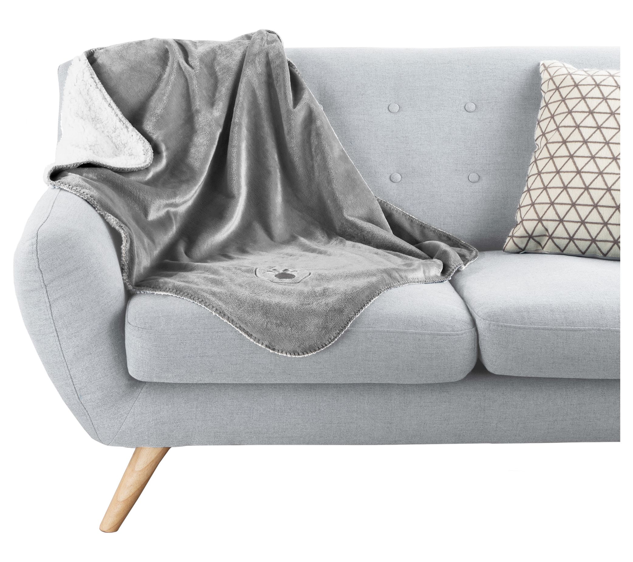 Protect your furniture from spills, stains, and pet fur with the Petmaker sherpa reversible dog blanket. This cozy blanket features flannel on one side and plush sherpa fleece on the other, offering ultimate comfort for your furry friend. Ideal for use on couches, beds, or even in the car, this machine-washable blanket is a practical and stylish addition to your pet supplies. From Petmaker.