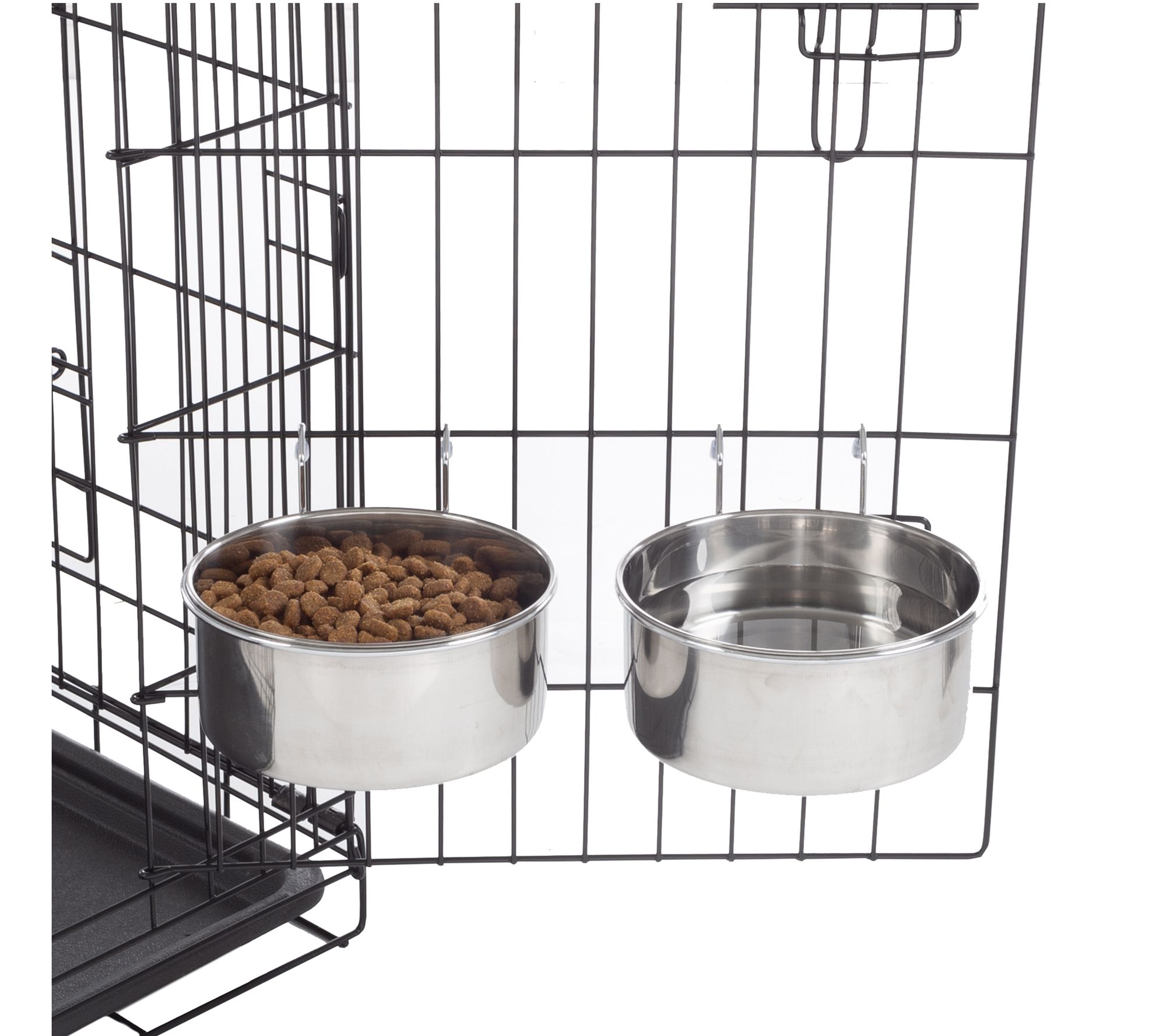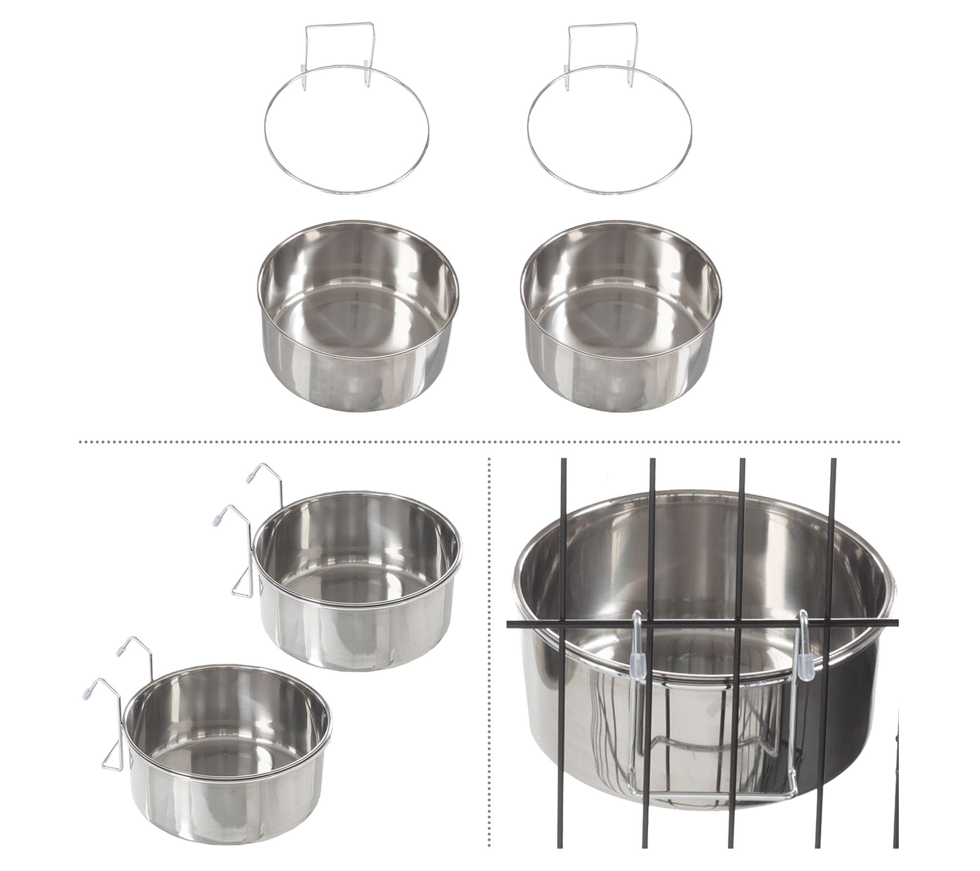 Offer a convenient and reliable feeding solution for your furry friends with this versatile set of bowls. With hanging brackets to keep the bowls elevated, they make mealtime more comfortable for your little buddy. From Petmaker.