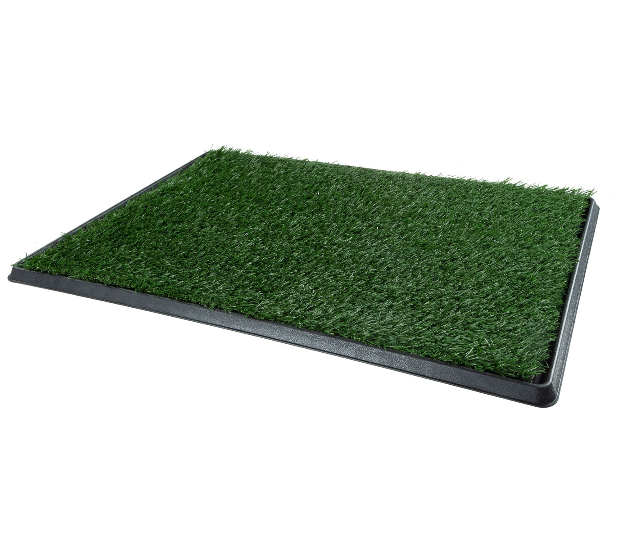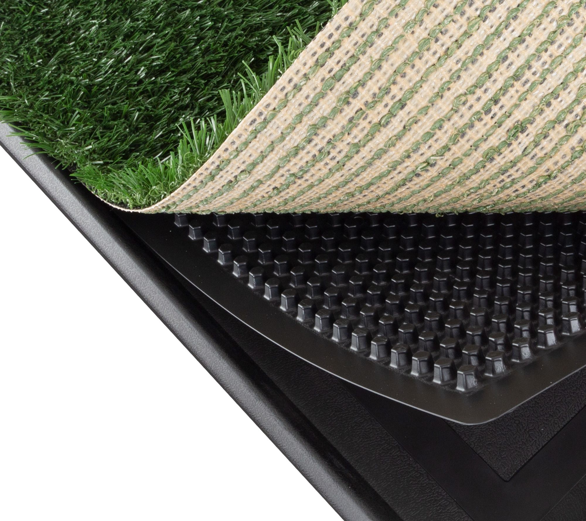 • Synthetic plastic grass mat; hard plastic tray and insert