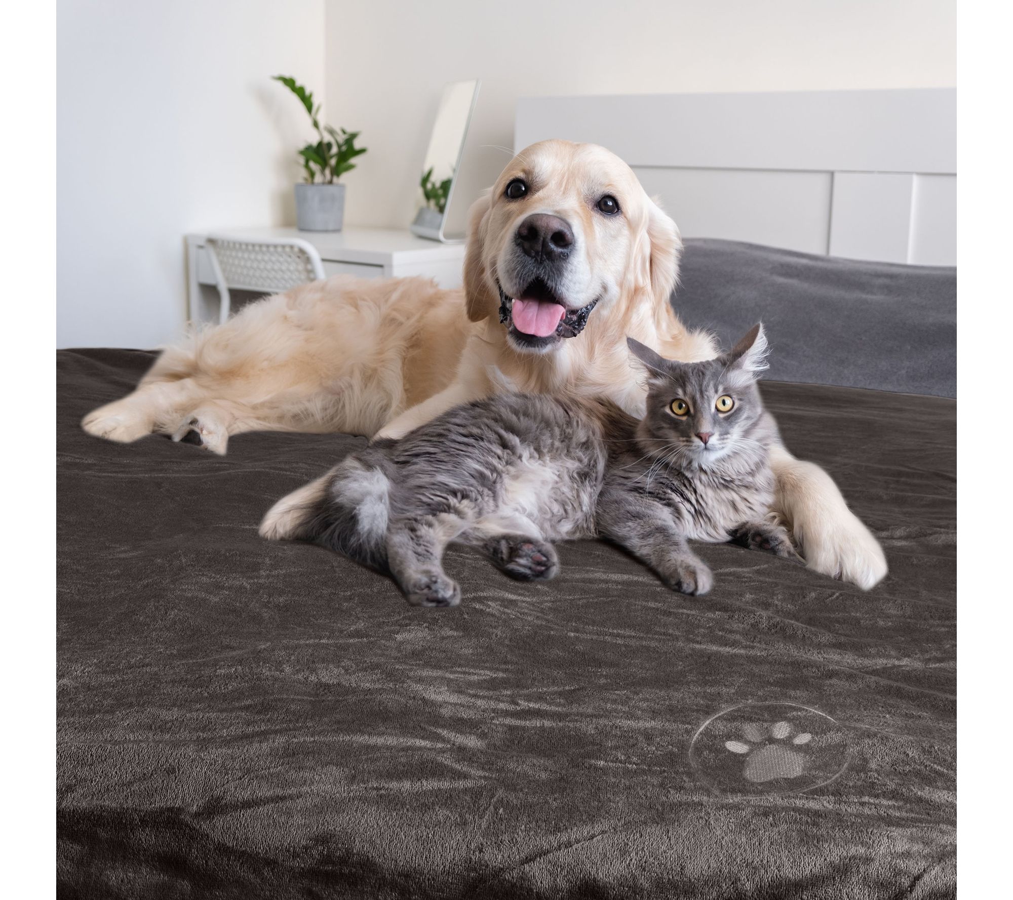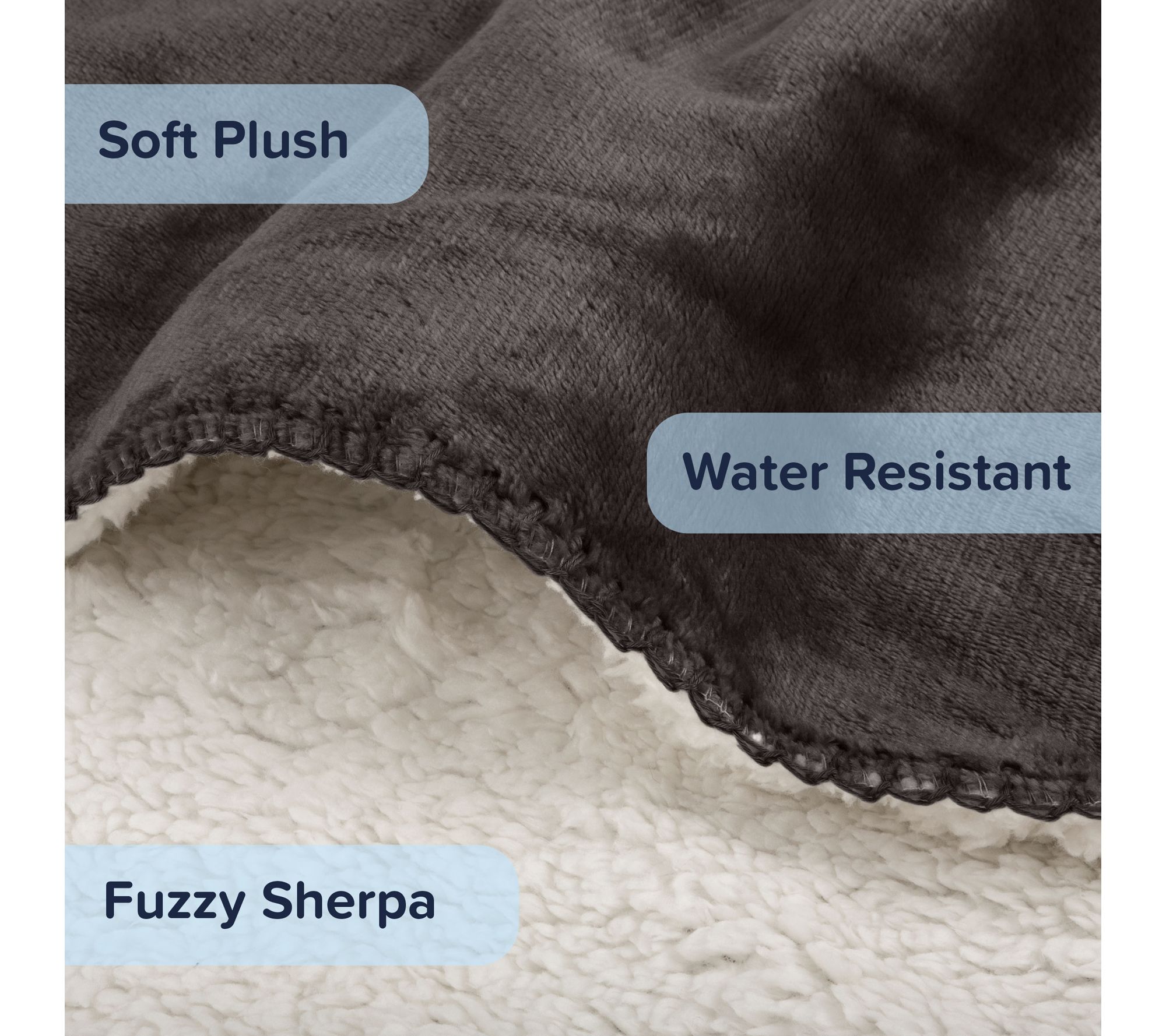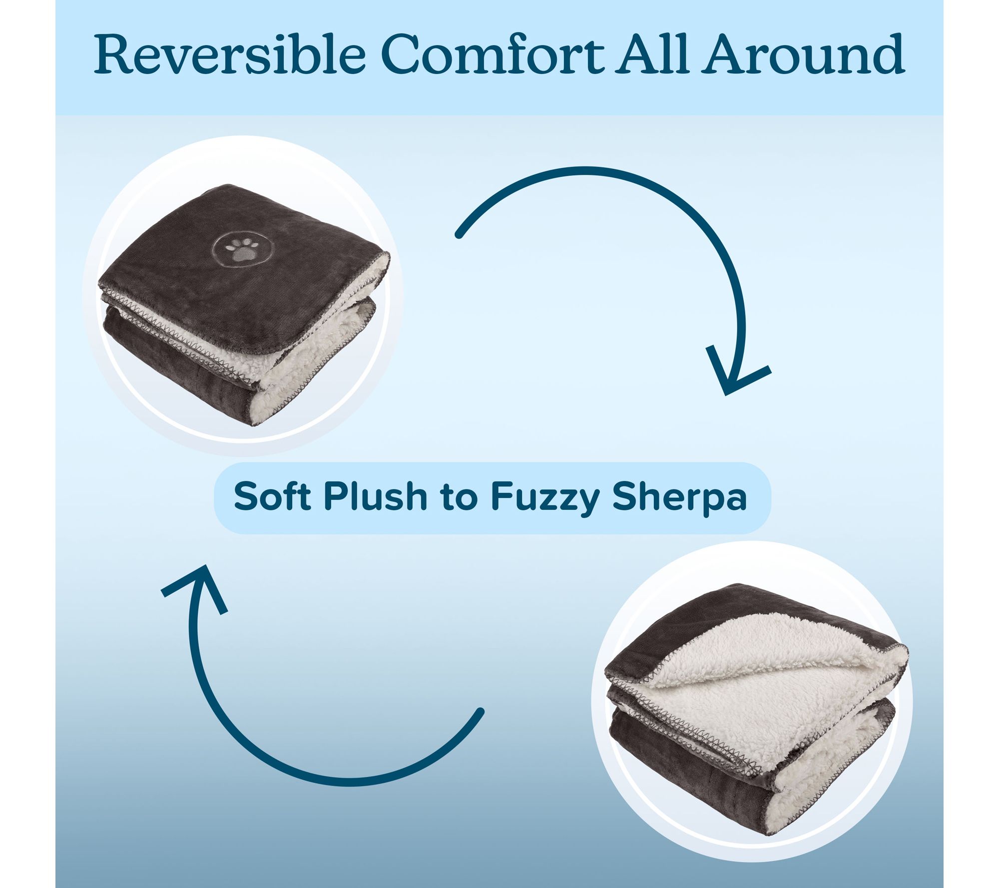 Snuggle up with your furry companion while protecting your furniture from spills and pet hair with this plush reversible pet blanket. Charcoal water-resistant flannel repels moisture on one side, while the plush Sherpa fleece on the other side offers a cozy spot for your pet to rest -- making it perfect for everything from weekend cuddles to on-the-go crate comfort. From PETMAKER.