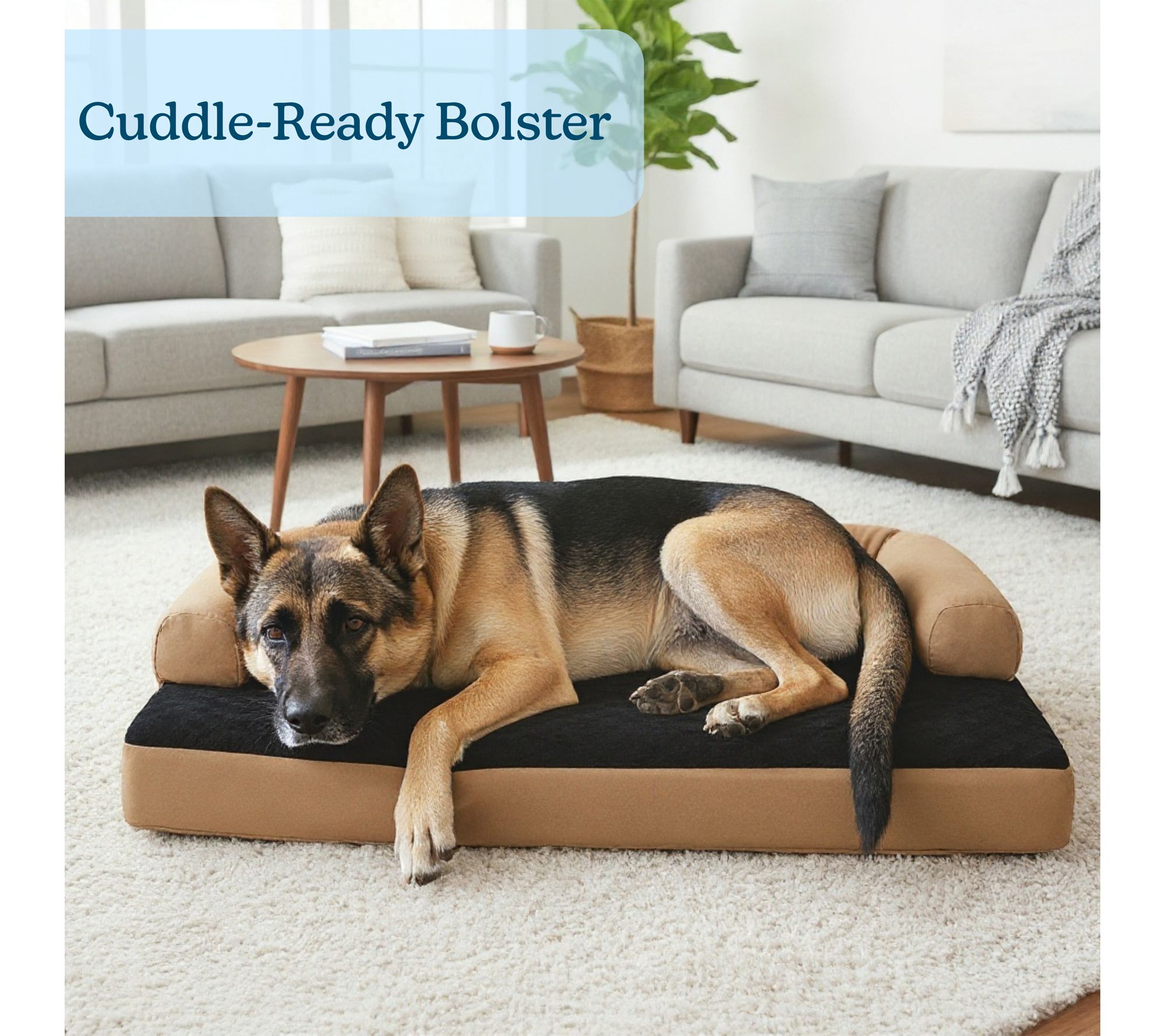 Give your furry companion a supportive, sofa-style spot to unwind with this three-layer orthopedic dog bed. Plush memory foam bolsters provide a comfy place to rest their head, while gel-infused foam and a cushy microsuede cover keep things cool and cozy, whether it's nap time or a night in the crate. From Petmaker.
