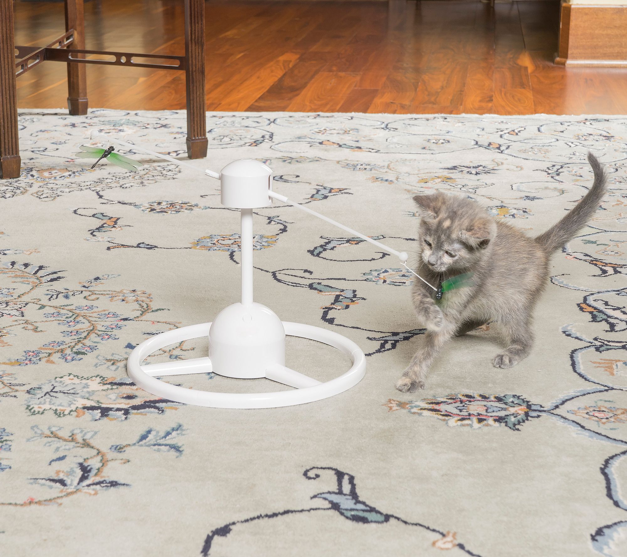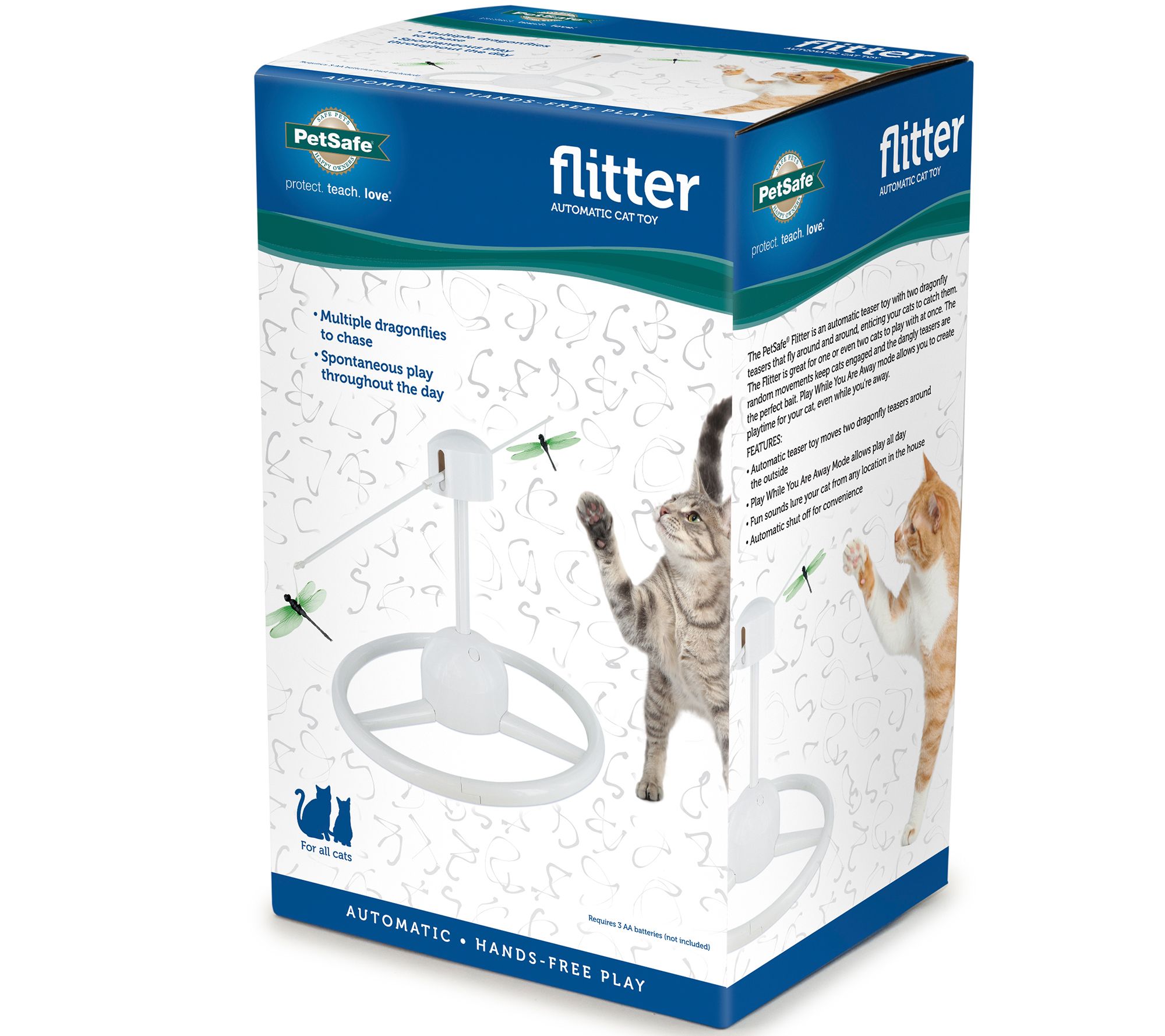 Flittering fun for your feline. This PetSafe flitter cat toy features two teaser arms with dragonfly attachments--perfect for pouncing, punching, and playing with all day long. From PetSafe.