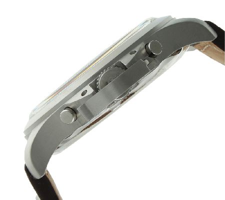 • Round stainless steel case and caseback; push/pull crown with crown lock; mineral crystal