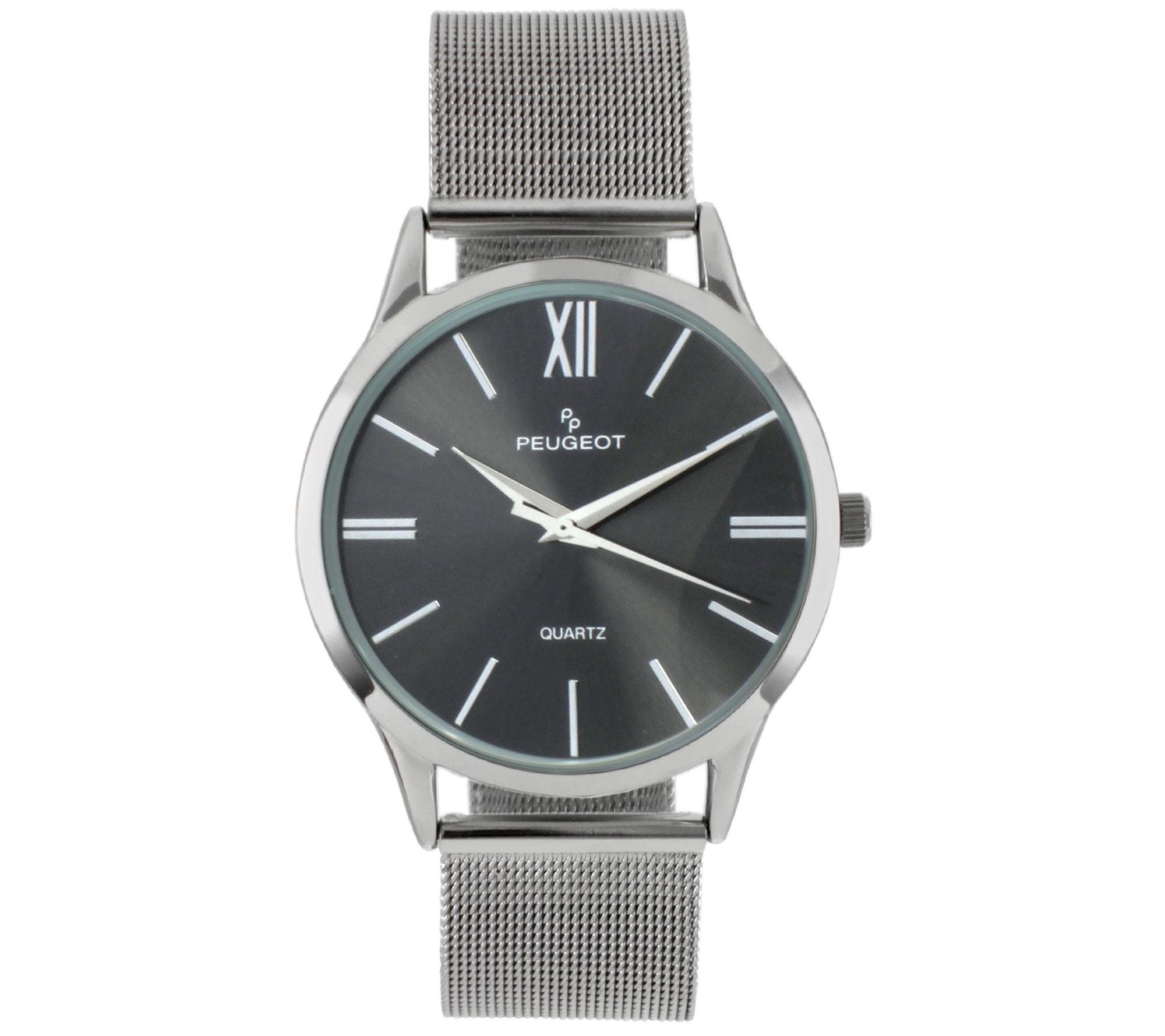 Peugeot Men's Stainless Steel Slim Grey Dial Mesh Watch