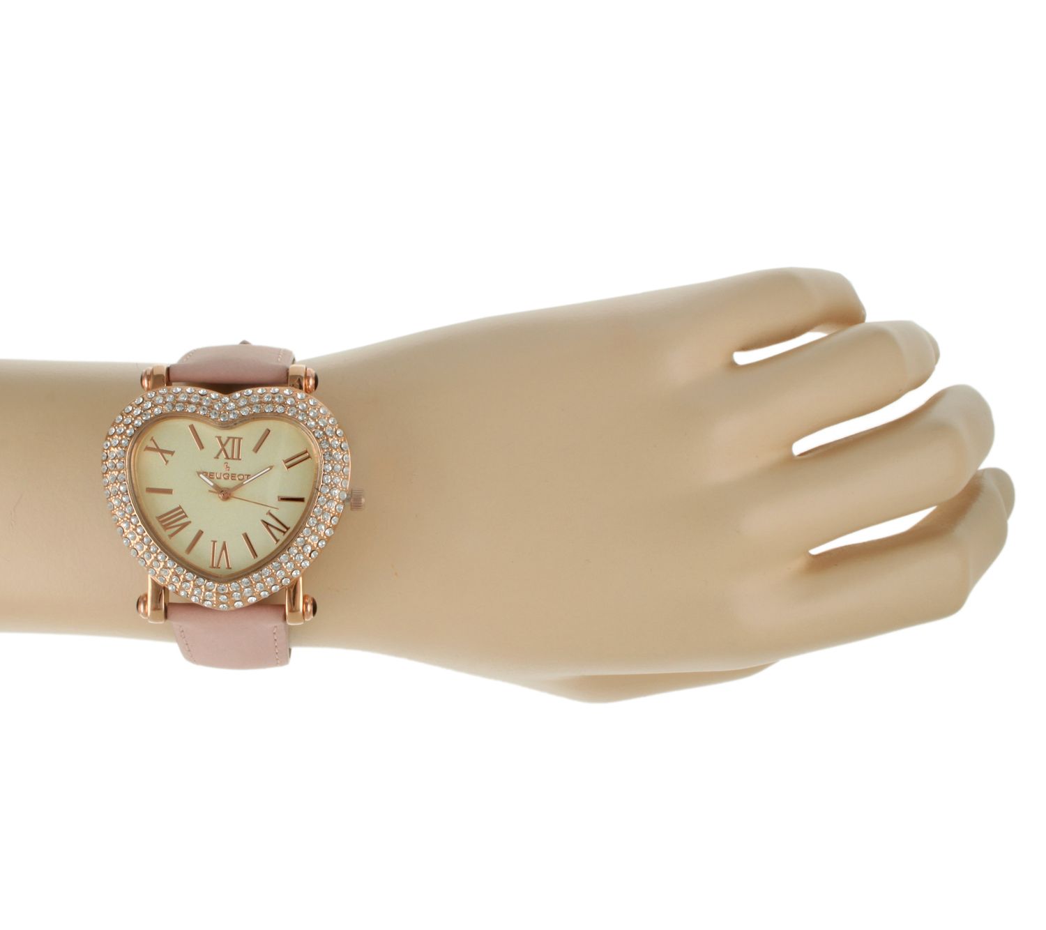 Peugeot Women's Rosetone Heart Pink Leather Strap Watch