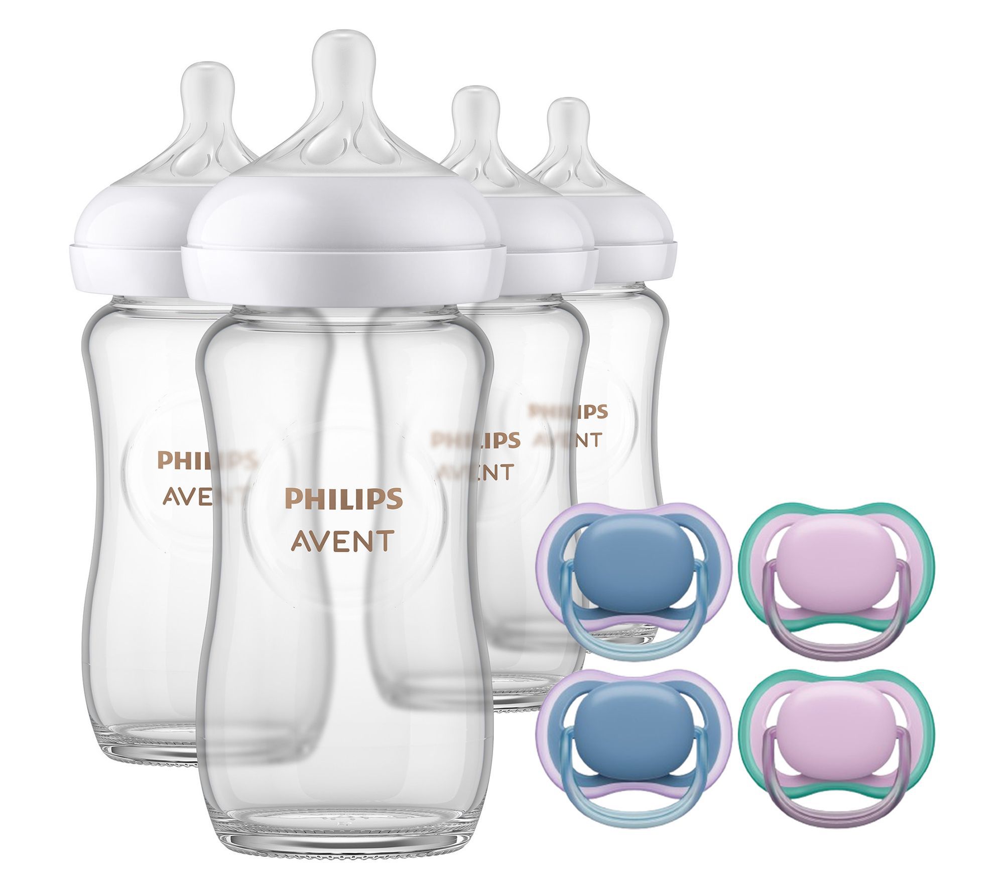 • Includes four pacifiers, two sterilizer carry case, and four 8-oz Natural Glass bottles with Flow 3 nipples
