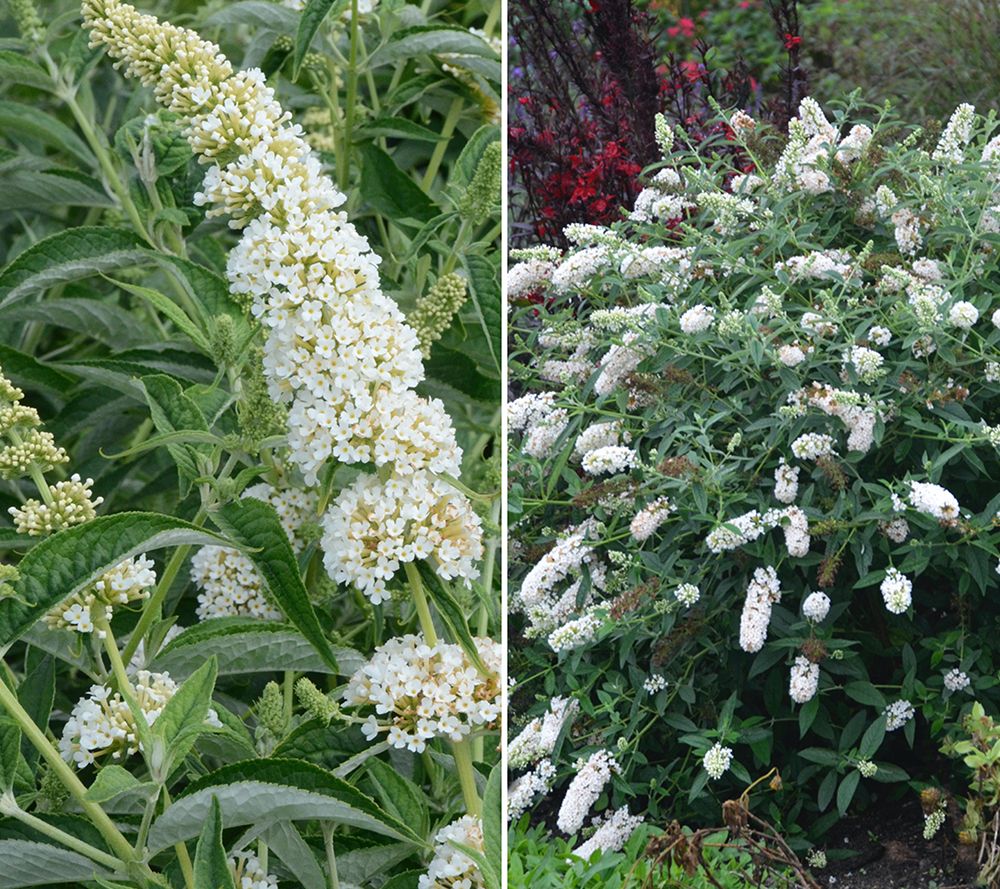 Easily the most stylish selection of Butterfly Bush you'll ever encounter, this 2-in-1 collection includes Midnight and Ivory Buzz Butterfly Bush. These two plants produce sultry deep violet flowers and chic ivory flowers at the same time. They'll sweetly perfume your outdoor oasis for months each summer. From Phillip Watson.