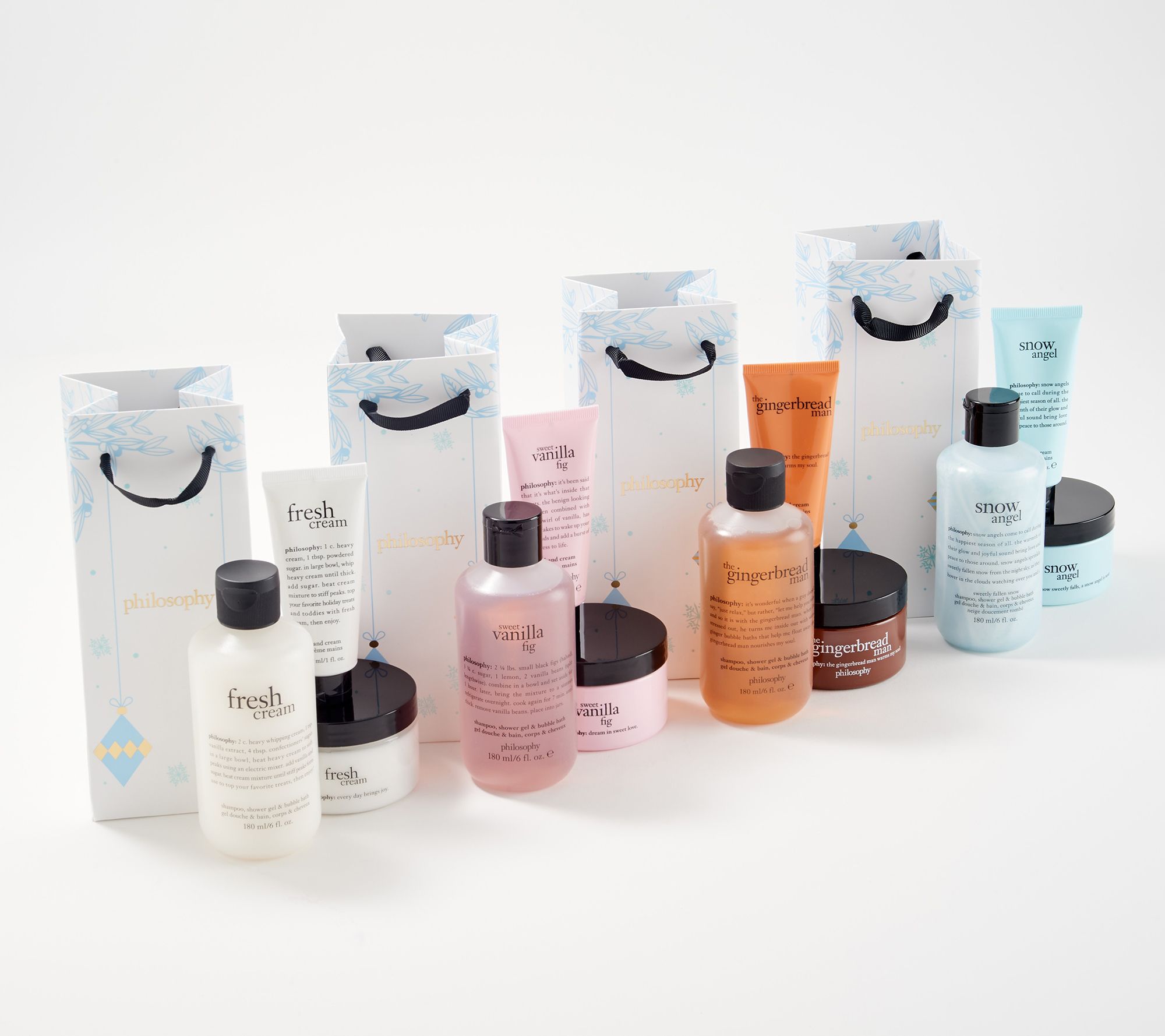 Ring in the holiday season with this philosophy bath and body collection! The ultimate gift for everyone on your list (even yourself!), the 12-piece set lets you layer from head to toe in a sweet selection of classic and holiday scents. Break up the kit into smaller gifts using the handy holiday bags or spoil someone with the complete collection.