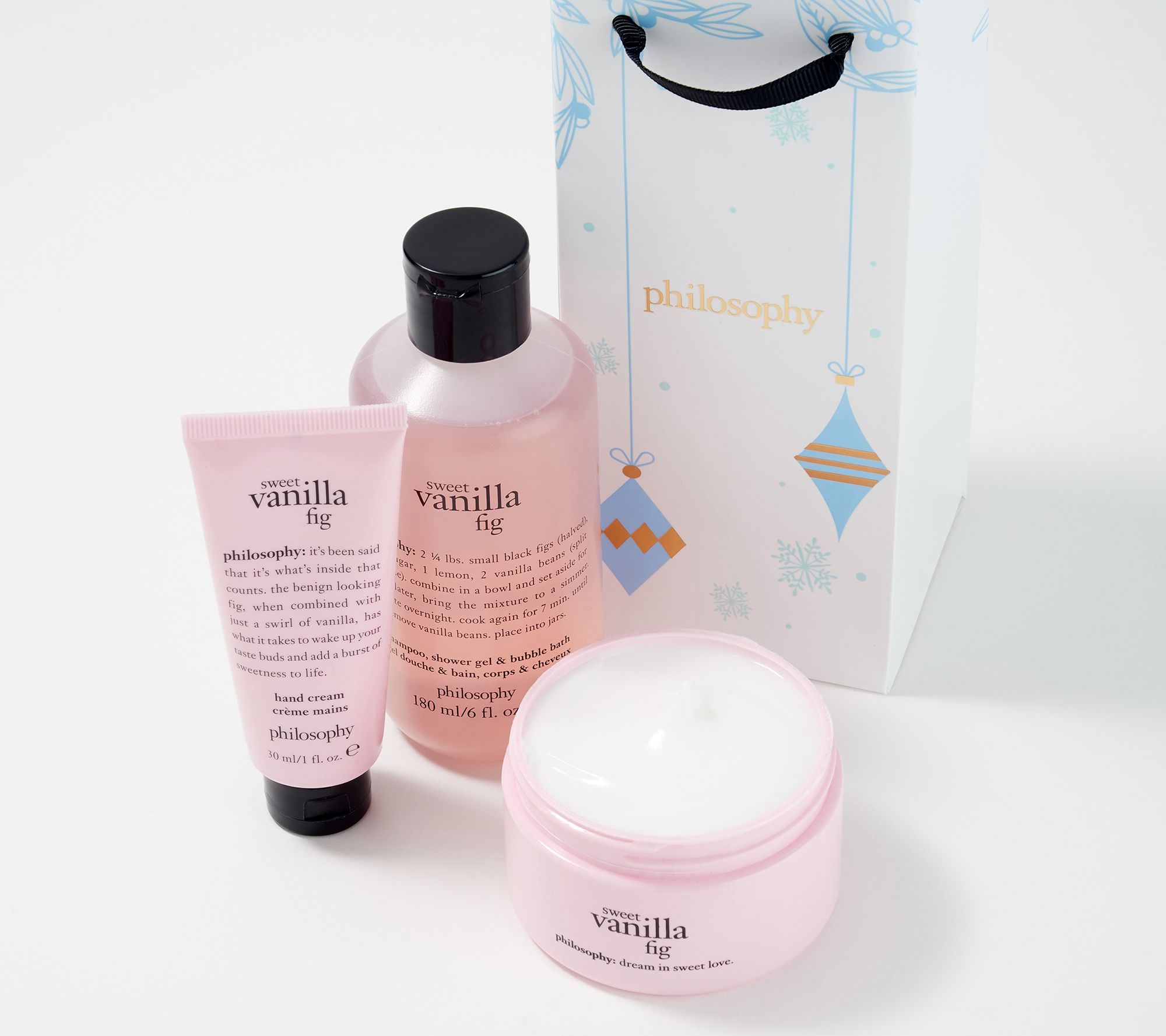 • 6-fl oz sweet vanilla fig shampoo, shower gel & bubble bath