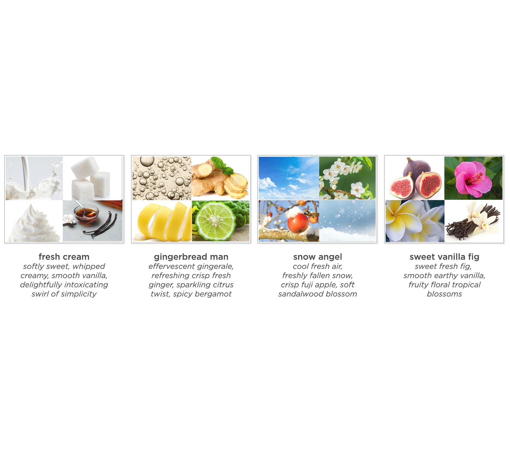 snow angel is reminiscent of fresh fallen snow with crisp fuji apple, fresh citrus, sugared musk, and soft sandalwood.
