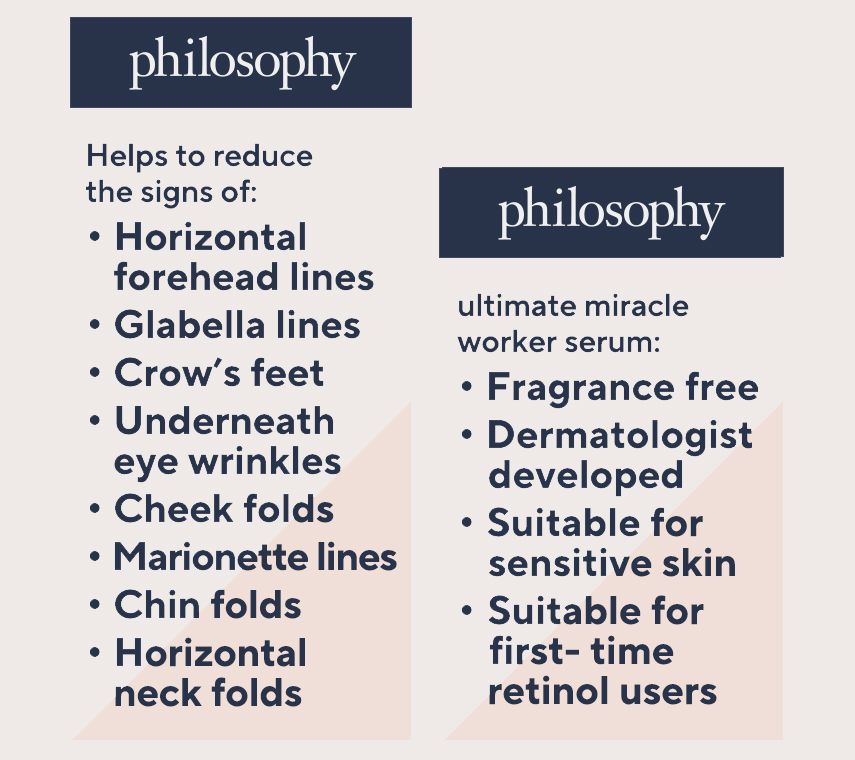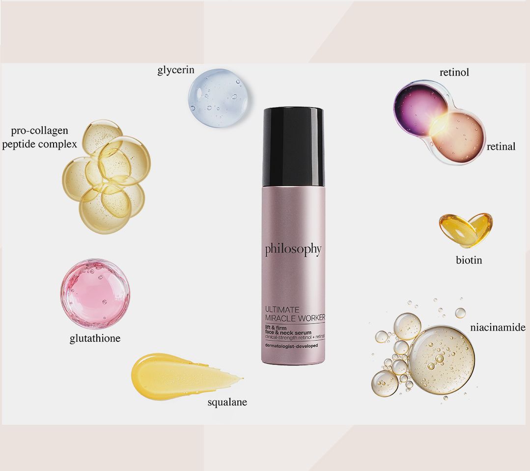 From philosophy, ultimate miracle worker lift & firm face & neck serum is formulated with retinol and retinal. It helps improve the look of lifted skin and improve the look of fine lines and wrinkles on the face and neck. It also helps give a more youthful-looking appearance. This face serum is dermatologist-developed, fragrance-free, and suitable for all skin types including sensitive skin and first-time retinol users.