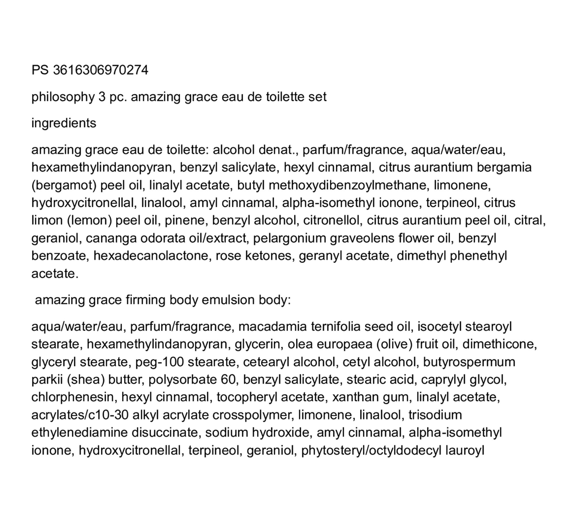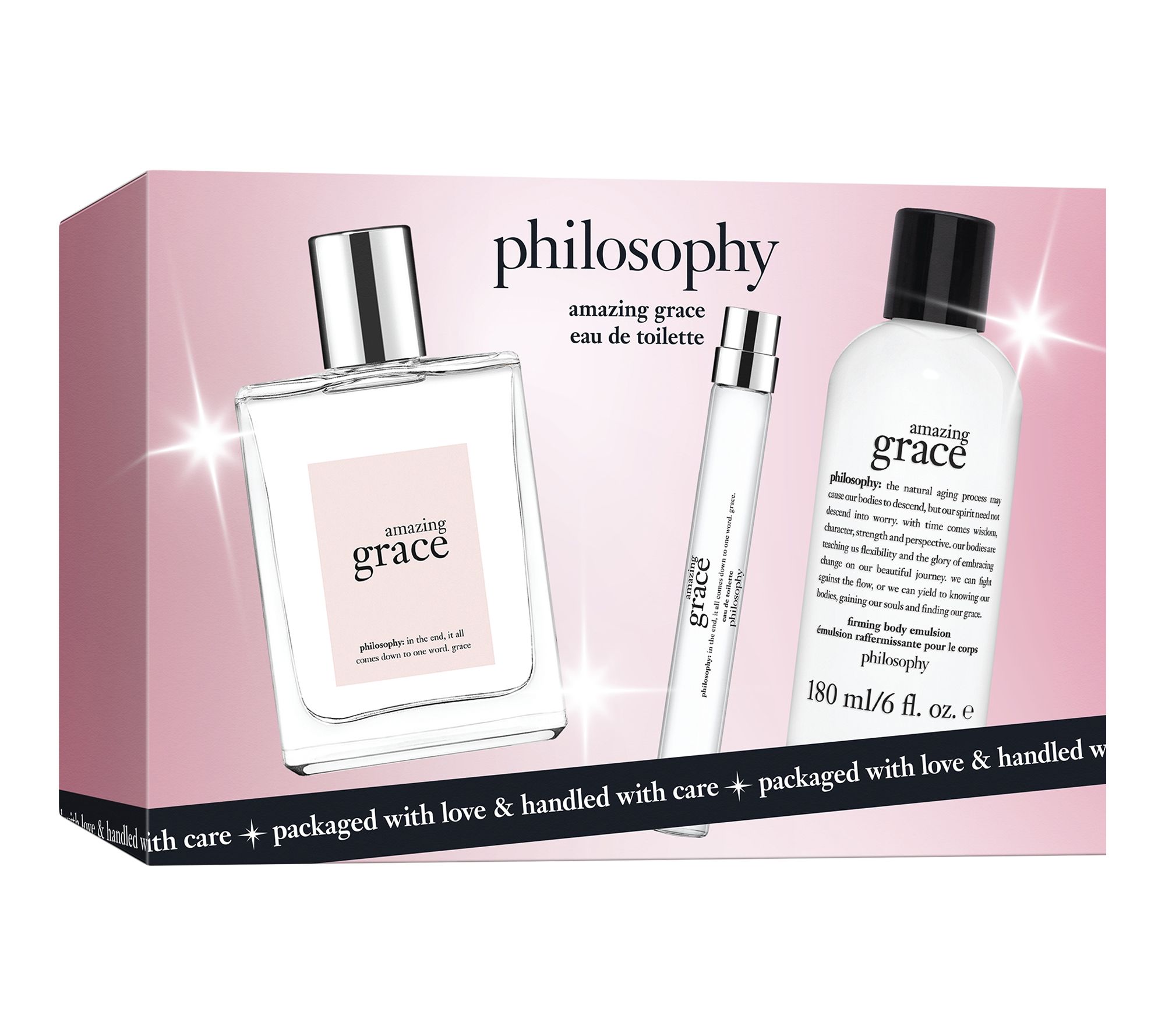 Giftable cheer comes once a year. 'Tis the season for sharing a special delivery with a magical philosophy gift set that is packaged with love and handled with care. Let the festive season begin with the amazing grace fragrance set. Wrapped up for the holiday season in a special-edition design, this moisturizer and perfume set makes the perfect gift. Feel amazingly clean and beautifully feminine with the floral fragrance.