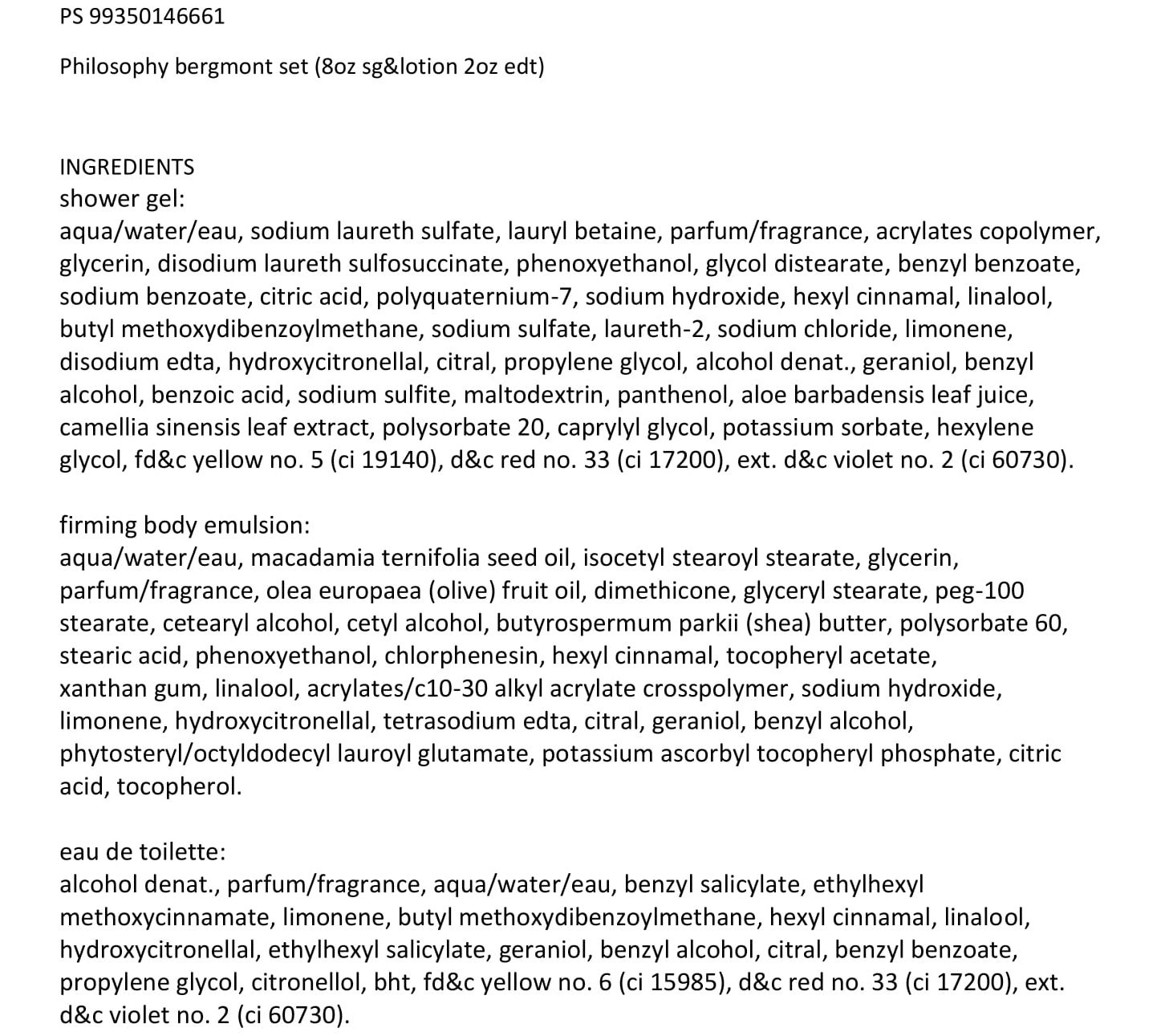 How do I use it: Apply shampoo, bath & shower gel to wet body or scalp, lather, and rinse. Or, drizzle a generous amount under running water to enjoy a luxurious, scented bath. Follow by massaging the firming body emulsion onto skin. Finish by spritzing clean, dry body with eau de toilette.