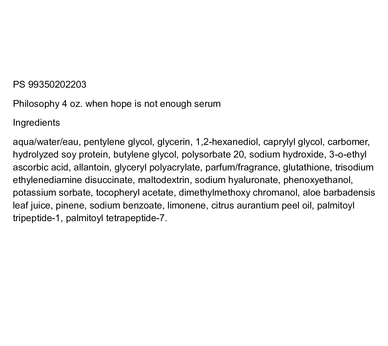 Help smooth and brighten the look of skin with philosophy's when hope is not enough facial serum fluid gel serum. Ideal for all skin types, the lightweight formula delivers a breathable veil of hydration while helping to improve the look of skin texture. It helps improve the look of fine lines and wrinkles. Fast-absorbing and easy to layer, it helps give skin a more radiant, refreshed appearance. It helps skin look brighter and more youthful-looking - making it the perfect addition to any skin-care routine.