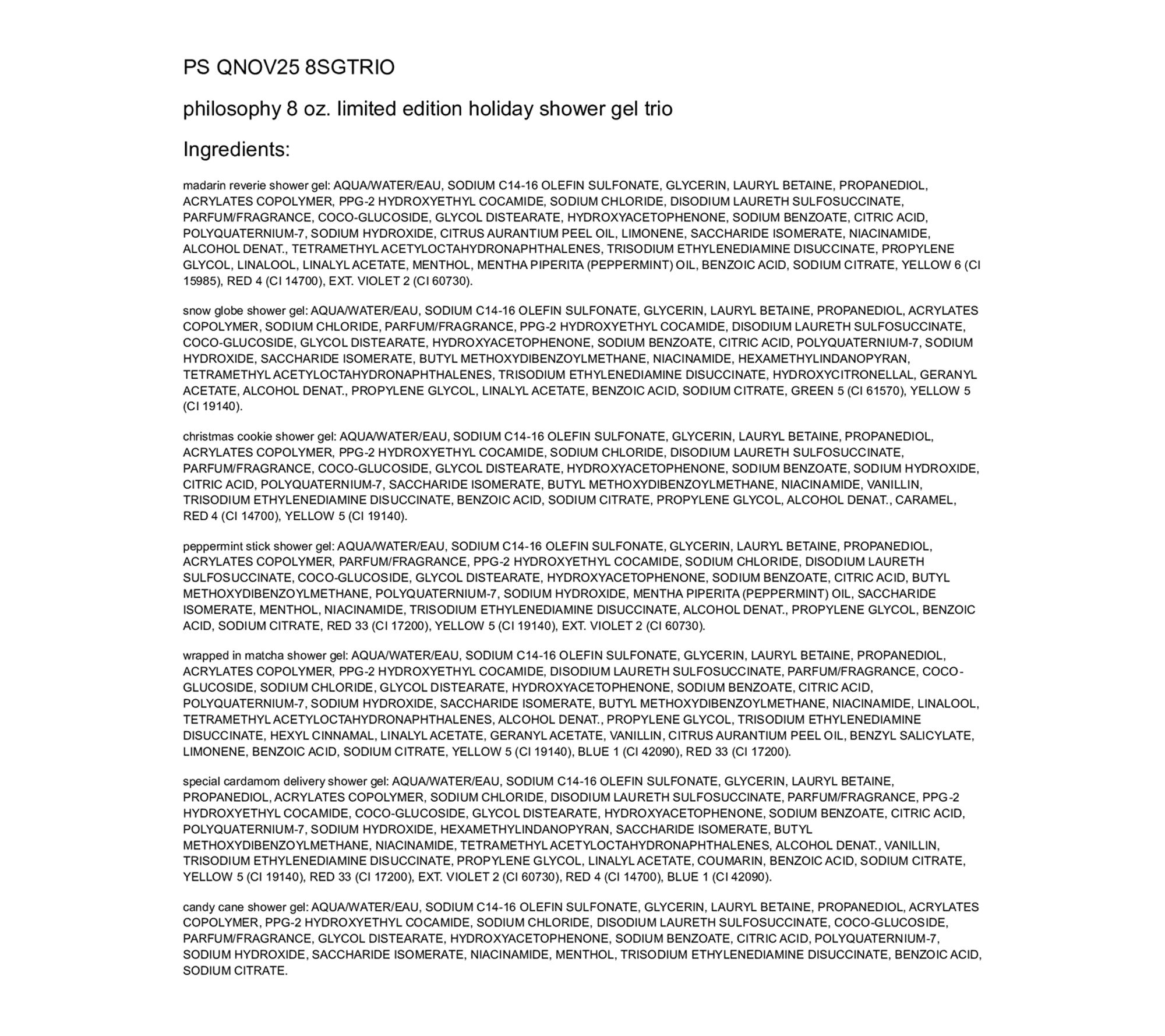 Giftable cheer comes once a year. 'Tis the season for gifting philosophy's holiday special-edition 8-oz hydrating shower gel, bubble bath, & shampoo. Formulated with five times more hydrating ingredients than before, the hydration lasts after showering with a pH-balanced formula.