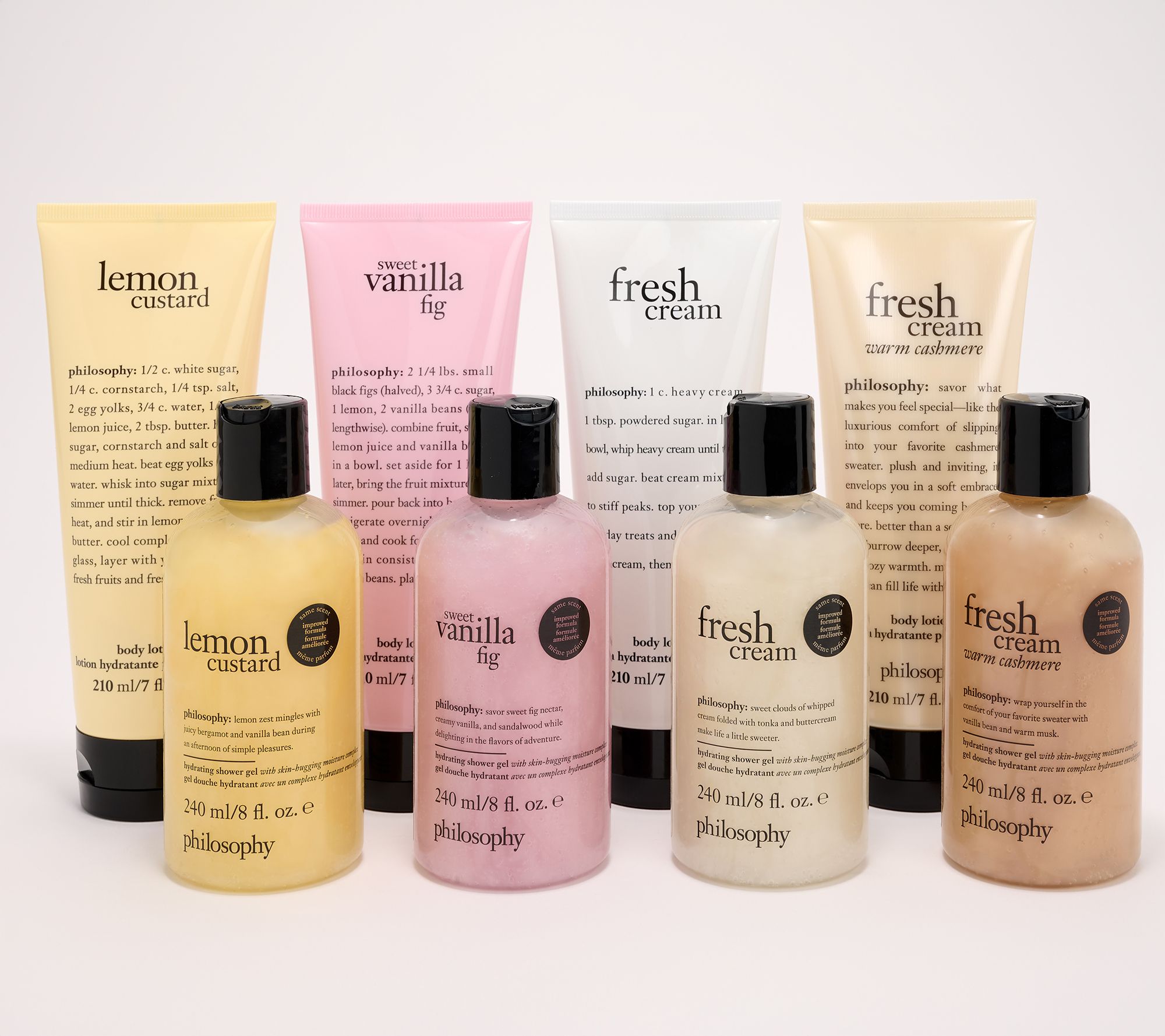 Give the gift of classic philosophy body care with this set that has everything you need from gift to bag -- all you have to do is decide who gets what scent! Indulge someone with philosophy's hydrating shower gel, bubble bath, and shampoo that harnesses skin-care technology to hug body skin in hydration all day long without compromising the feel-good scents or luxurious lather that philosophy is famous for. The ultra-creamy, iconic shower gel has been upgraded with a skin-hugging moisture complex that respects your body's moisture barrier and efficiently cleanses and comforts dry skin. Formulated with niacinamide and 5X more hydrating ingredients than before, the hydration lasts all day after showering. This multi-tasking shower gel can also be used as a bubble bath, shampoo, and even hand soap.