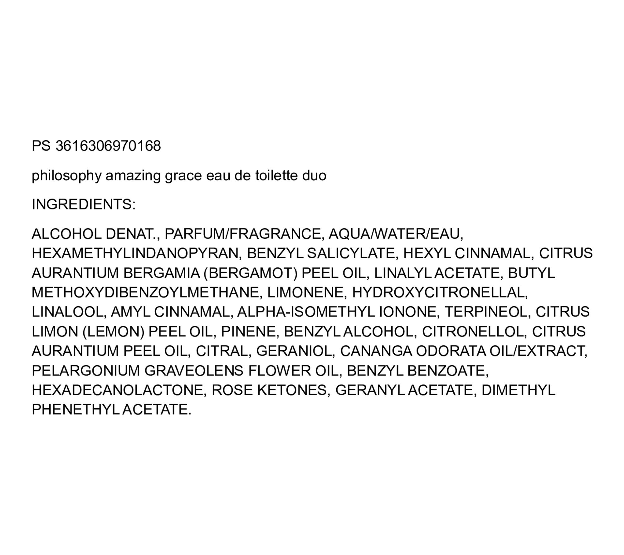 Giftable cheer comes once a year. 'Tis the season for sharing a special delivery with a magical philosophy gift set that is packaged with love and handled with care. Let the festive season begin with the amazing grace philosophy fragrance set. Wrapped up for the holiday season in a special-edition design, it makes the perfect gift. Notes of bergamot and lily of the valley are blended with the brand's signature musk for an amazing scent that's minimalist but memorable. It's a signature fragrance specially created for women to wear for themselves when they want to feel as amazing as they are.