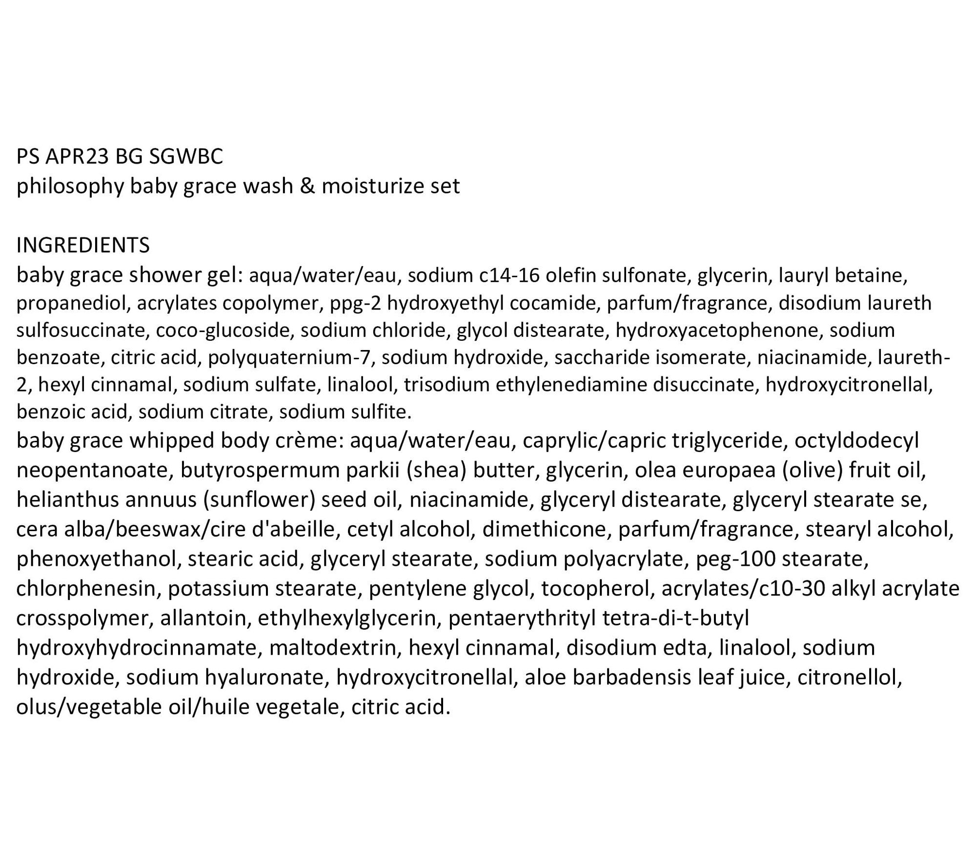Give your body a cleanse and hydration with philosophy's 3-in-1 multitasking shower gel and whipped body creme set. The shower gel formula helps cleanse, condition, and soften skin and hair while providing a rich, foaming lather. The luxurious whipped body creme melts onto skin to help moisturize. Formulated with shea butter, olive oil, aloe, and sodium hyaluronate, it helps leave skin silky-soft and lightly fragranced.